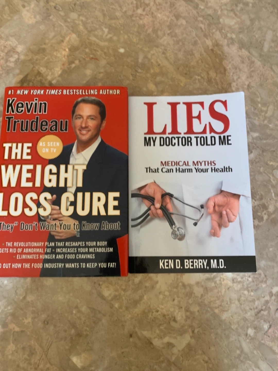 Selling two books: "The Weight Loss Cure" by Kevin Trudeau and "Lies My Doctor Told Me" by Ken D. Berry, M.D. "The Weight Loss Cure" is a revolutionary plan that reshapes your body, gets rid of abnormal fat, increases your metabolism, and eliminates hunger and food cravings. "Lies My Doctor Told Me" discusses medical myths that can harm your health. Both for $5.