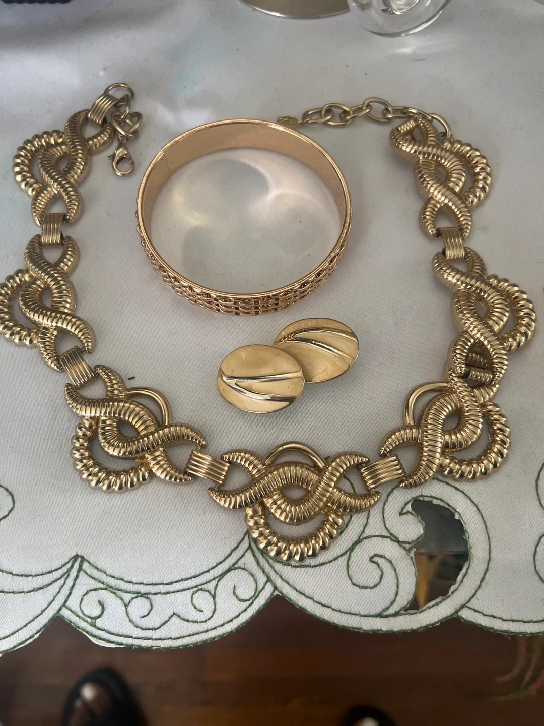 Selling a vintage gold tone jewellery set. Includes a necklace, bracelet and a pair of earrings. Great for adding a touch of retro glam to any outfit! Different price ranges just please message for pricing