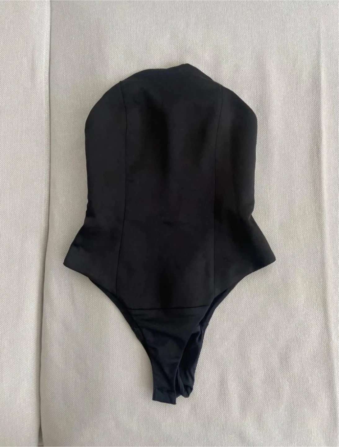 43Selling a cute Zara black strapless bodysuit! It's a size XS and made in Morocco. Perfect for going out, layering, or just looking fabulous