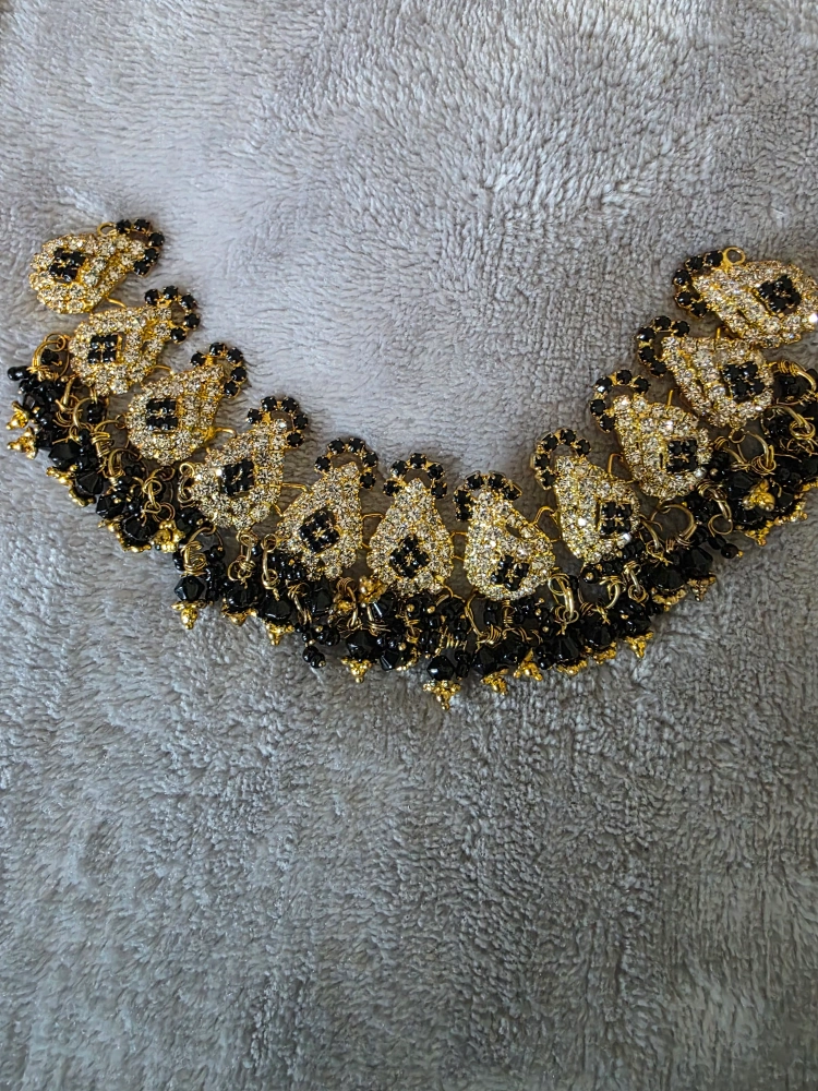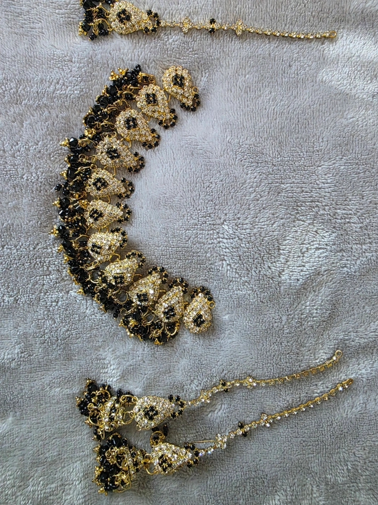 41Selling a beautiful necklace jewellery set! It features gold detailing with black beads and sparkling accents. Perfect for adding a touch of elegance to any outfit