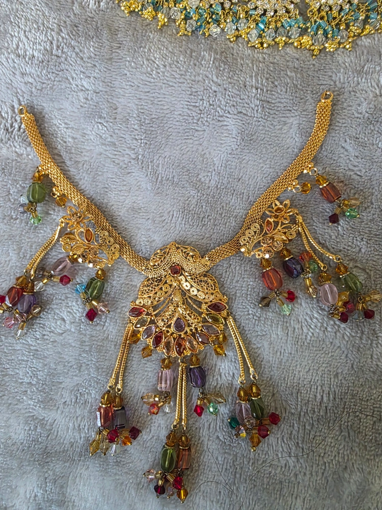 41Beautiful necklace and earring set with gold detailing and colourful beads. Perfect for a special occasion!$30 each both for $ 50.