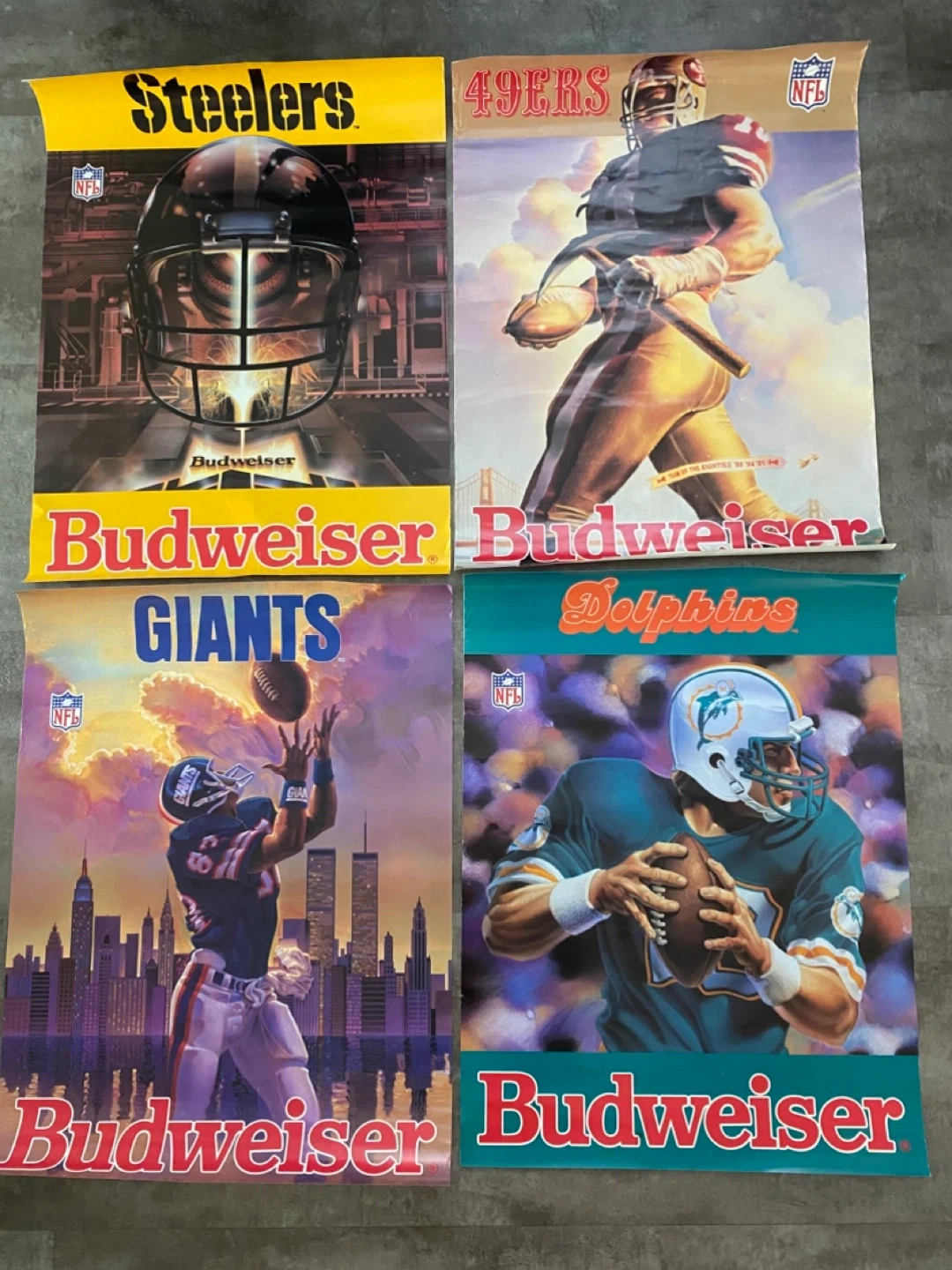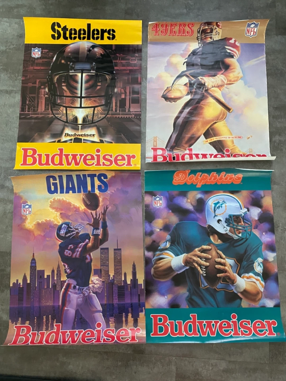 Selling a collection of vintage NFL Budweiser posters. Each poster features a different team: