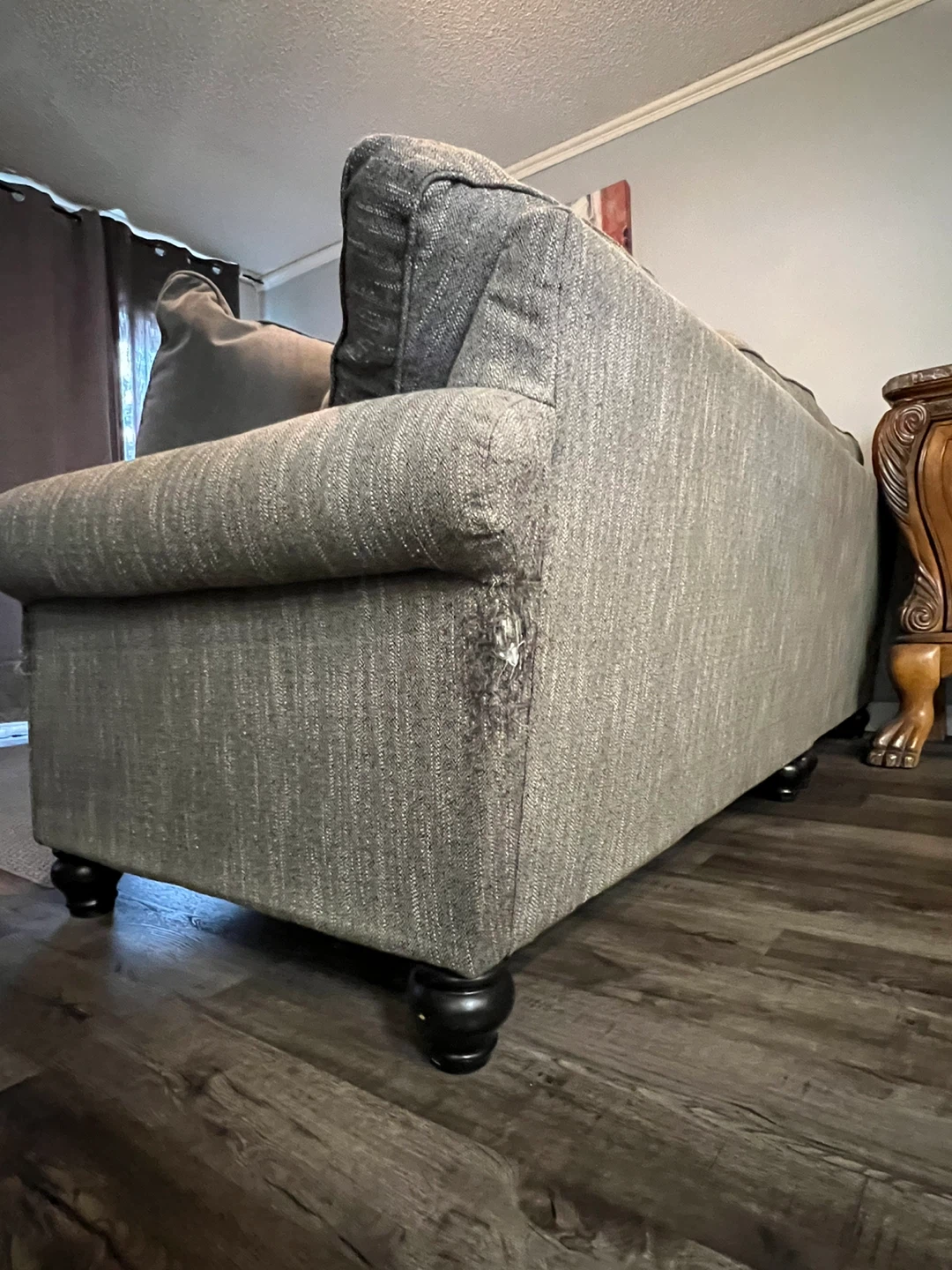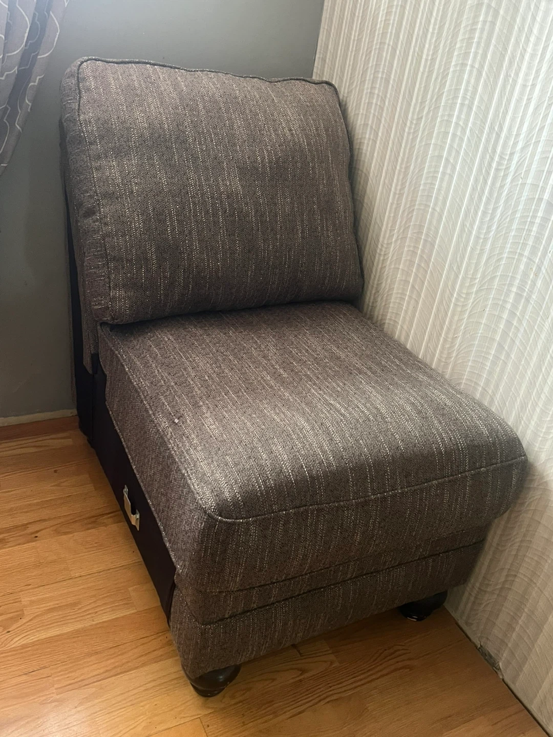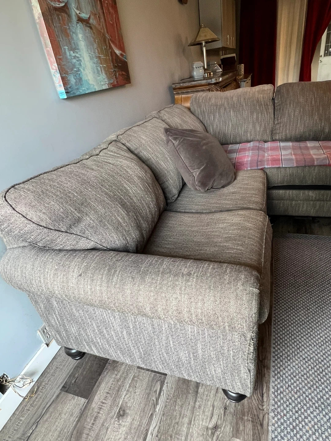 Selling a used sectional sofa that was originally from Ashley’s Furniture. It's a grey colour. There is some wear and tear on the side, and some minor damage on the sides, but IT IS CLEAN!!! Comes with cushions (6) that can be washed. I need this gone asap, as in by October 10/25. Make me an offer *PICK UP IN MARLBOROUGH-BRING TRUCK!*