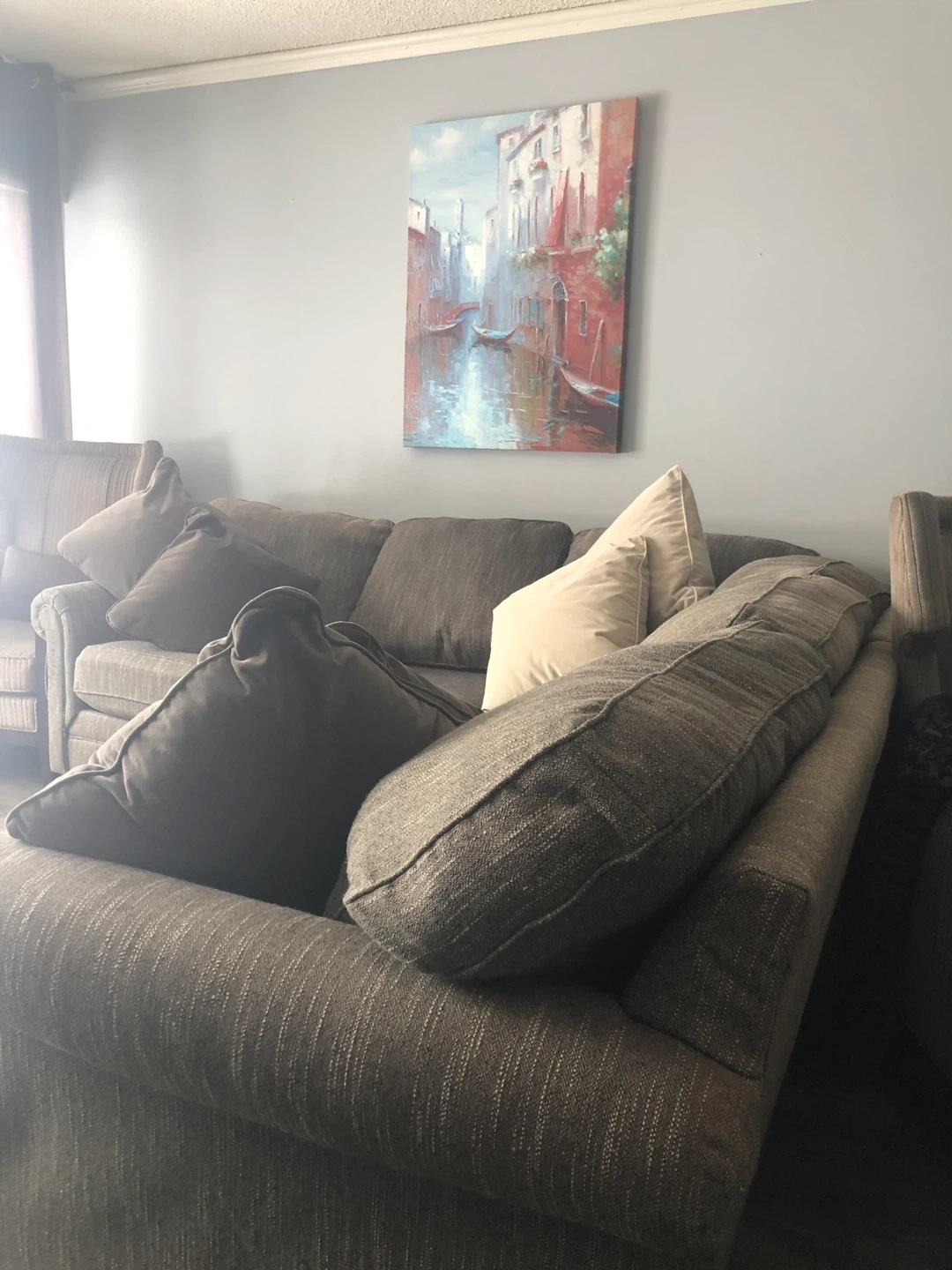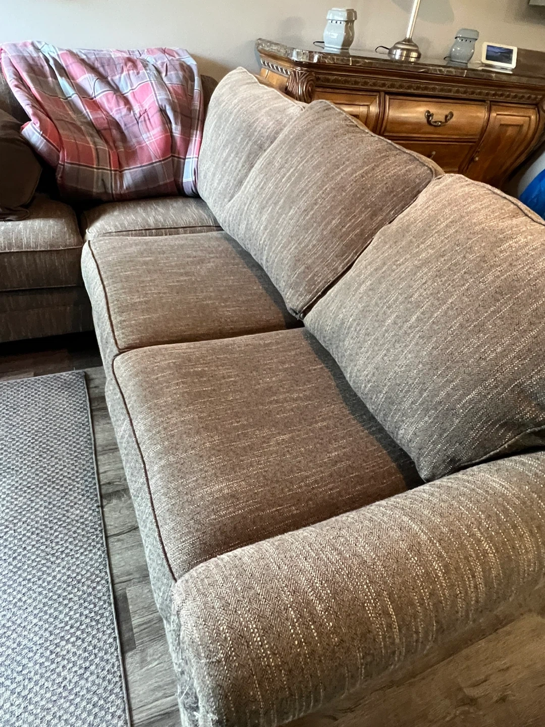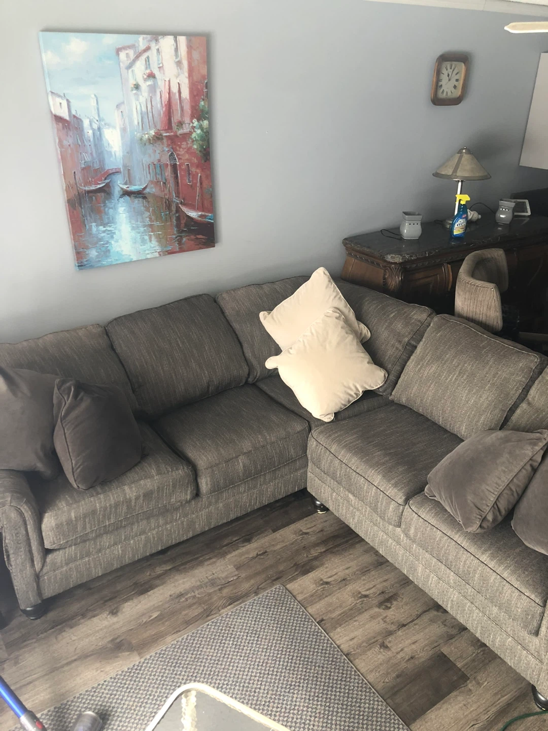Selling a used sectional sofa that was originally from Ashley’s Furniture. It's a grey colour. There is some wear and tear on the side, and some minor damage on the sides, but IT IS CLEAN!!! Comes with cushions (6) that can be washed. I need this gone asap, as in by October 10/25. Make me an offer *PICK UP IN MARLBOROUGH-BRING TRUCK!*