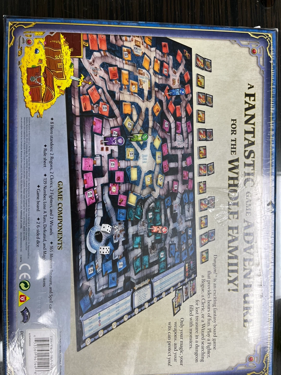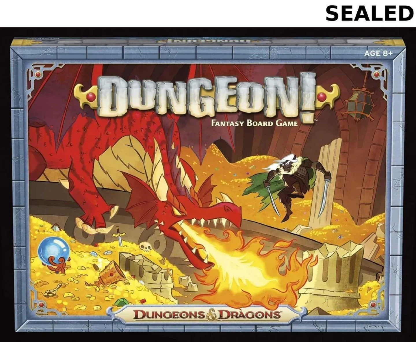 75Selling a brand new, sealed Dungeons & Dragons Dungeon! Fantasy Board Game! It's a fantastic game adventure for the whole family, suitable for ages 8+. The game includes: - 8 Hero standees (2 Rogues, 2 Clerics, 2 Fighters, and 2 Wizards) - 165 Monster, Treasure, and Spell cards - Rule sheet - 139 Numbered rooms to turn, defeat, and map - Game board - 2 Six-sided dice