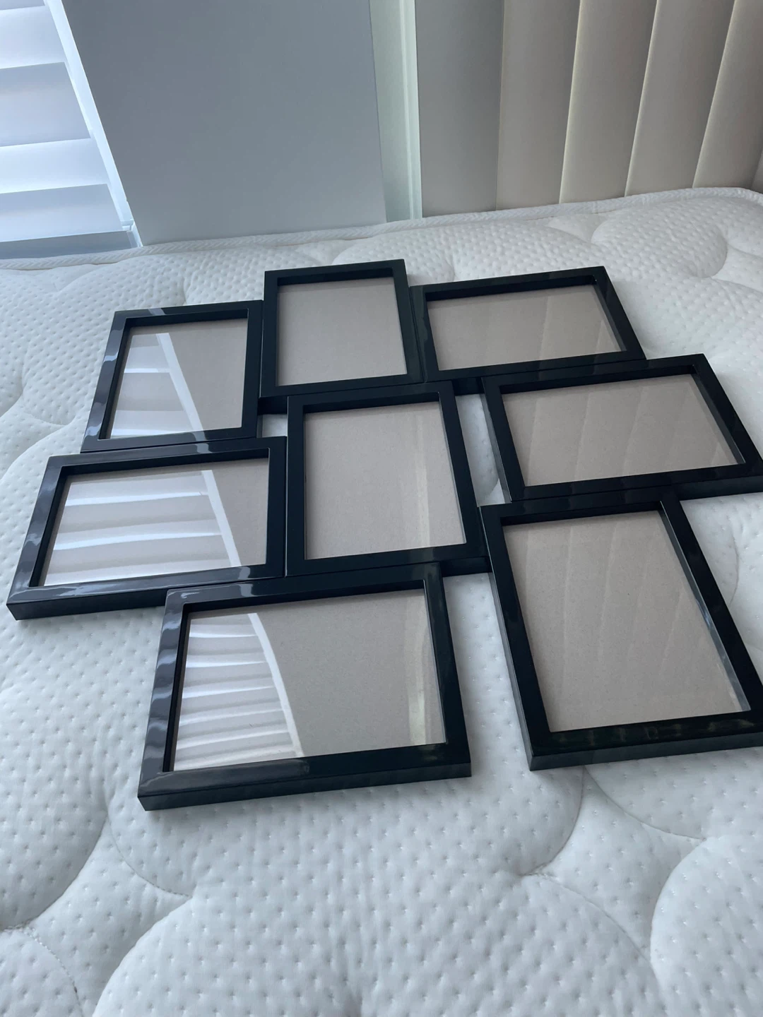 Selling a black collage picture frame! It's designed to hold 8 photos of various sizes. A nice way to display family memories or vacation photos! Costs $15 at IKEA