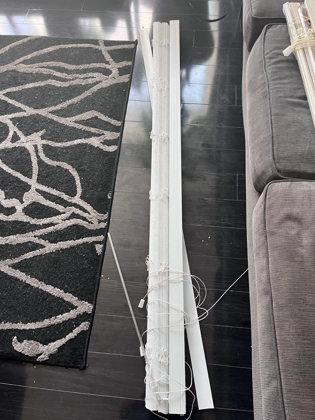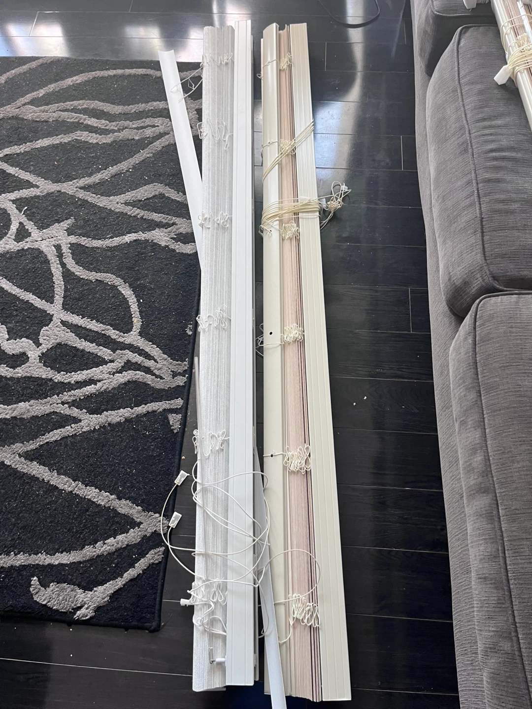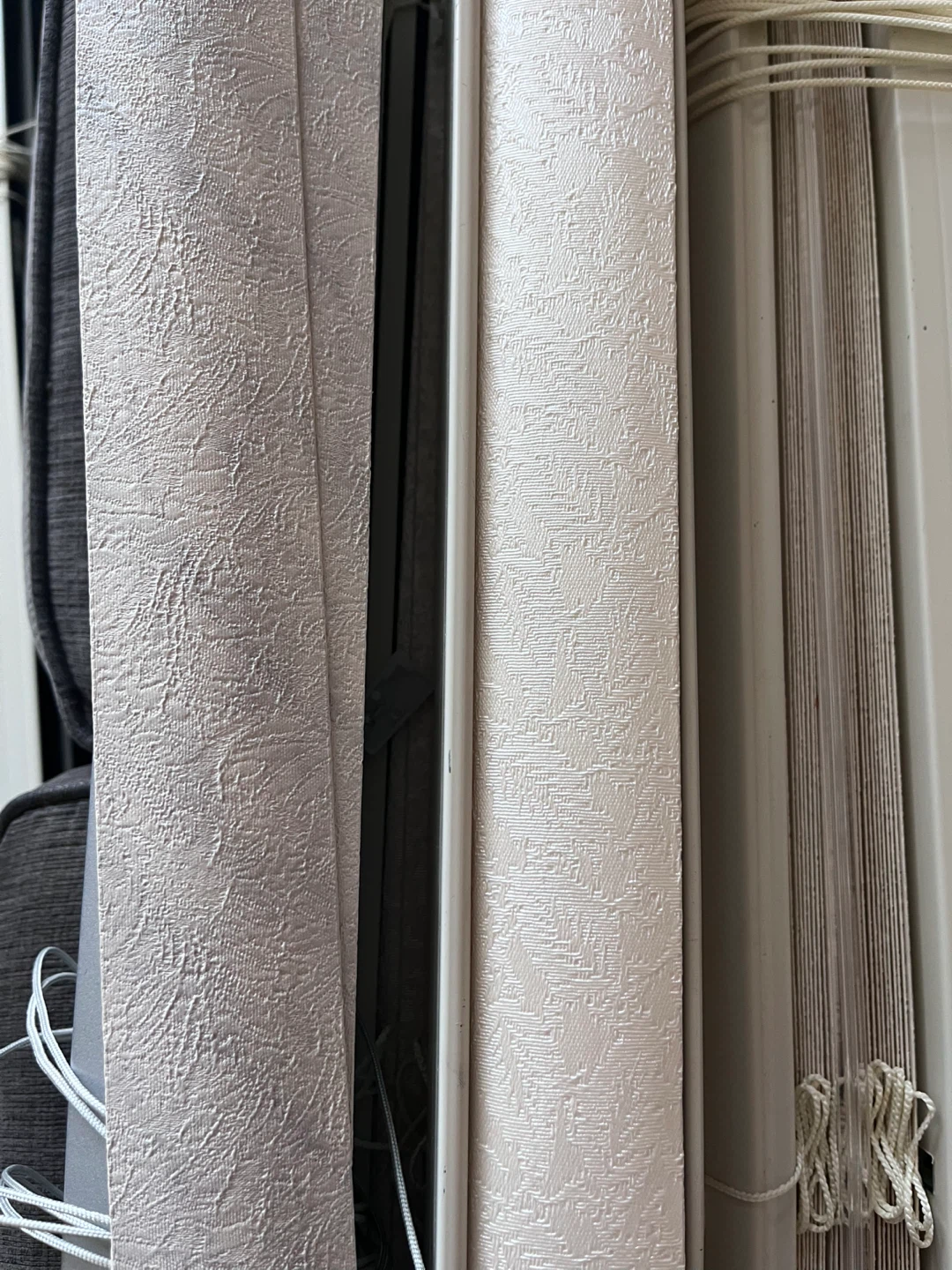 4 window blinds all in good condition. There are 2 different colours. Light grey with a textured pattern and a light beige with the same textured pattern.