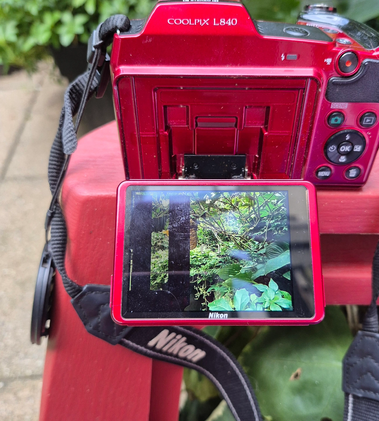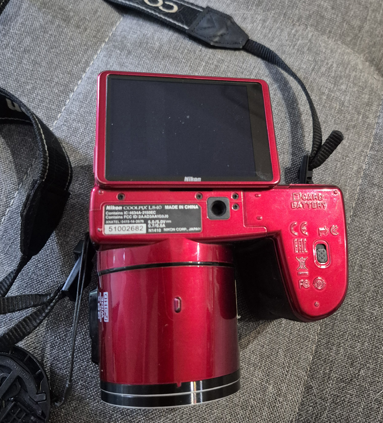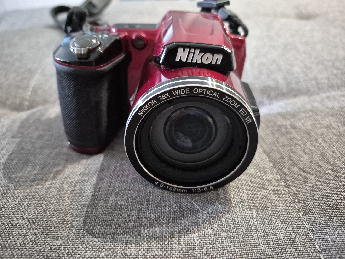 Selling a Nikon COOLPIX L840 digital camera in red. It features a NIKKOR 38x wide optical zoom ED VR lens with 4.0-152mm 1:3-6.5 capabilities.
