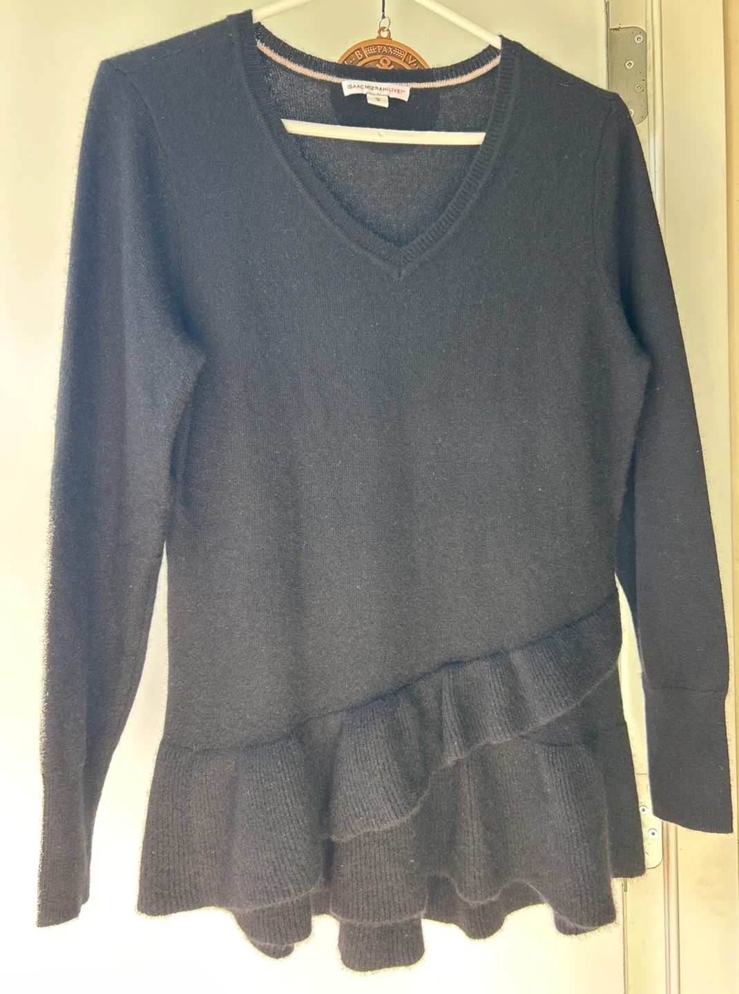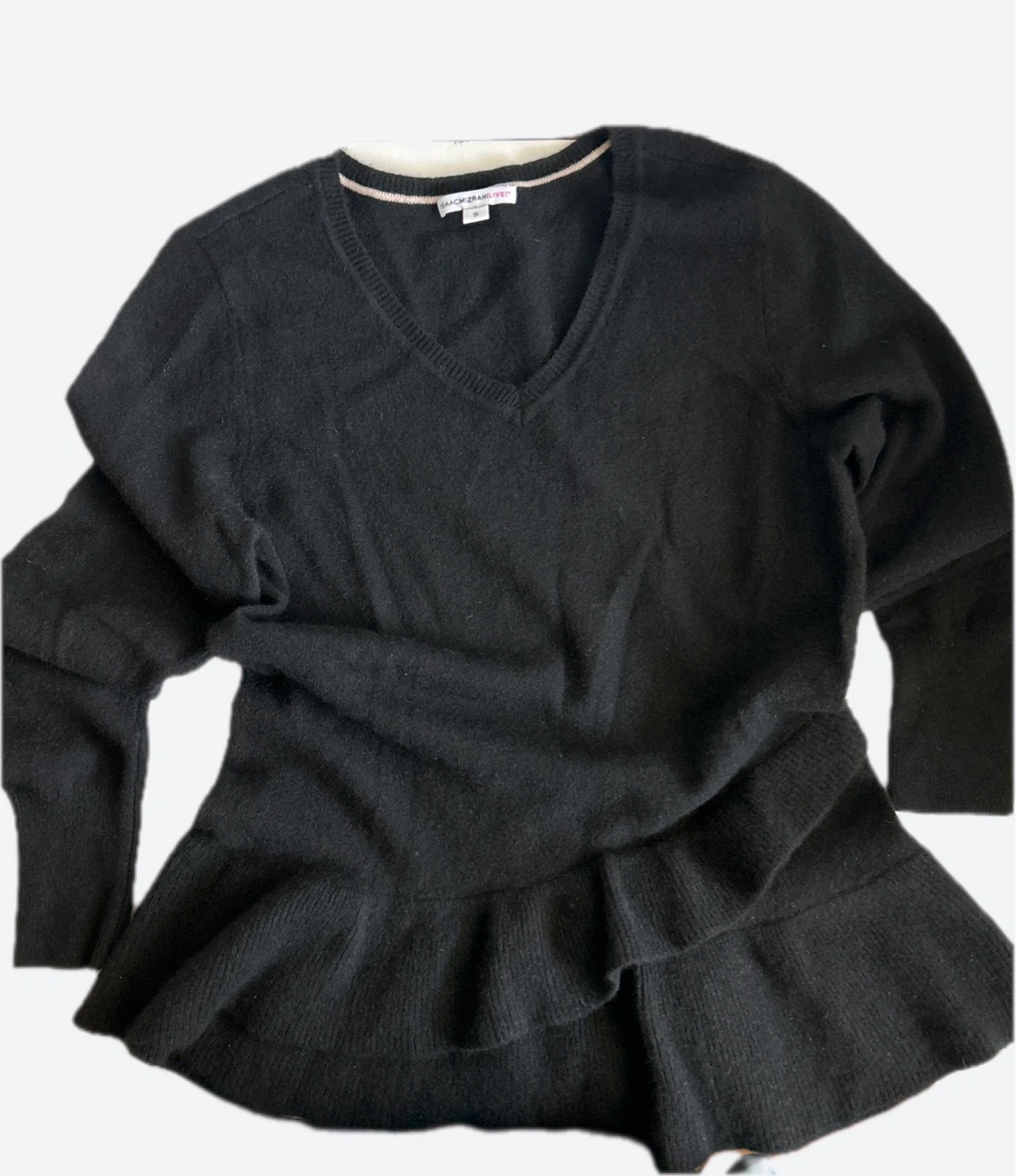 Isaac Mizrahi Live! Black Cashmere Ruffle Sweater - Size S