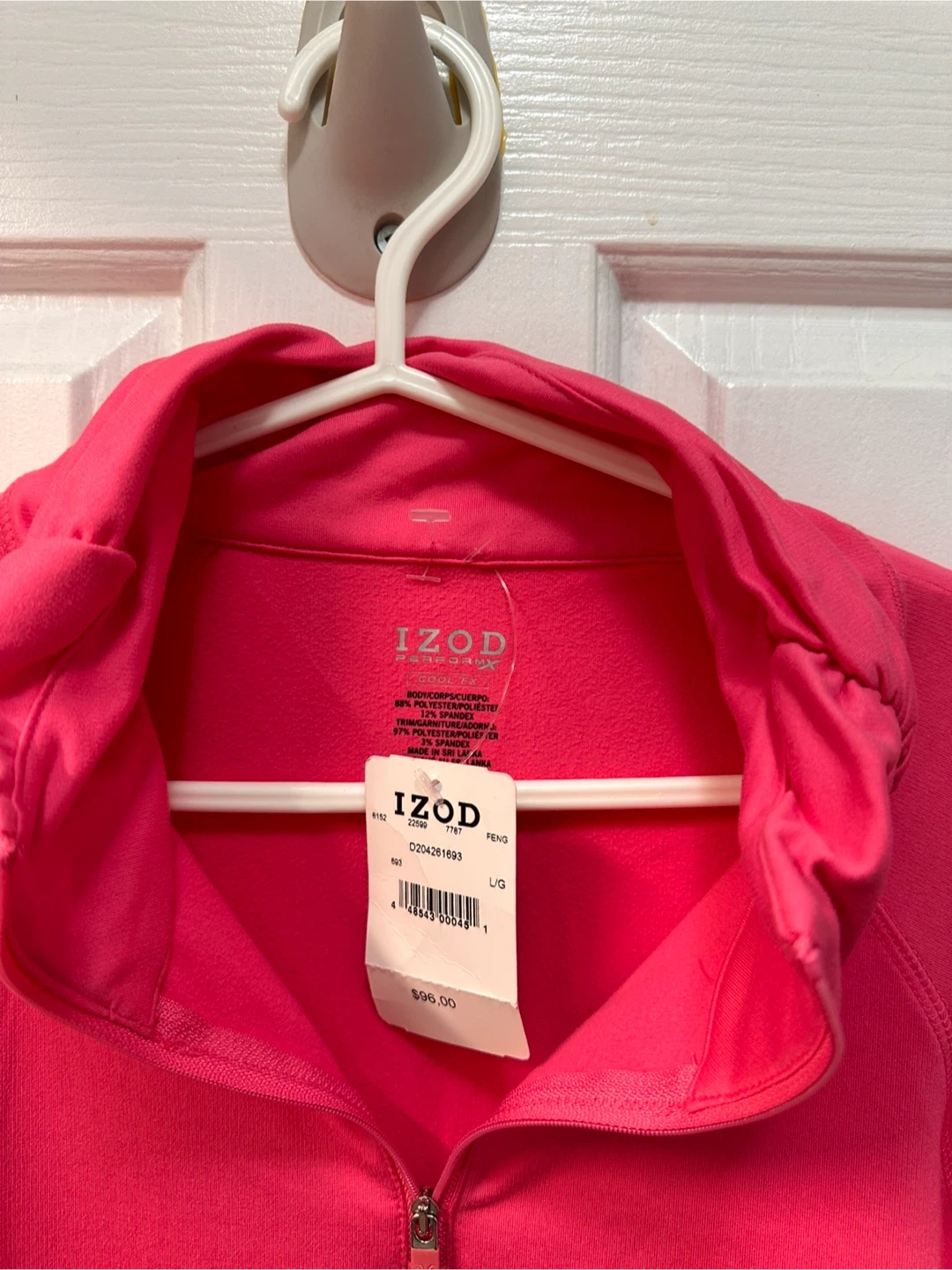 Selling a bright pink IZOD pullover! It's a size large and in great condition. Perfect for layering or wearing on its own. Originally bought for $96!