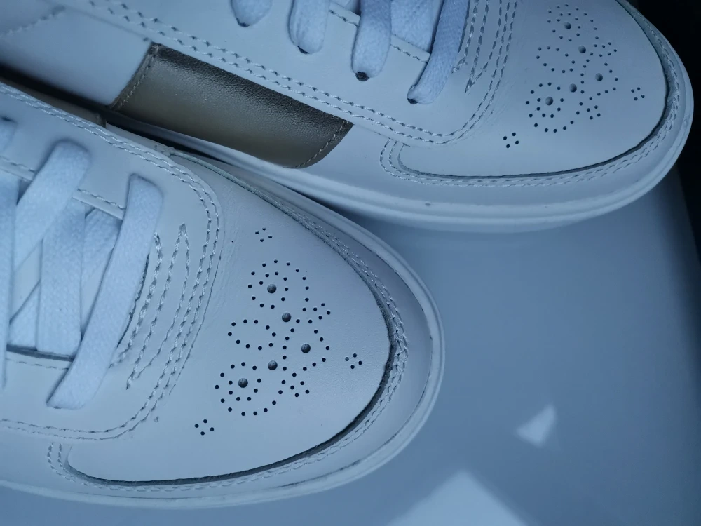 White leather with soft gold stripe. Both stylish and comfortable for everyday wear!