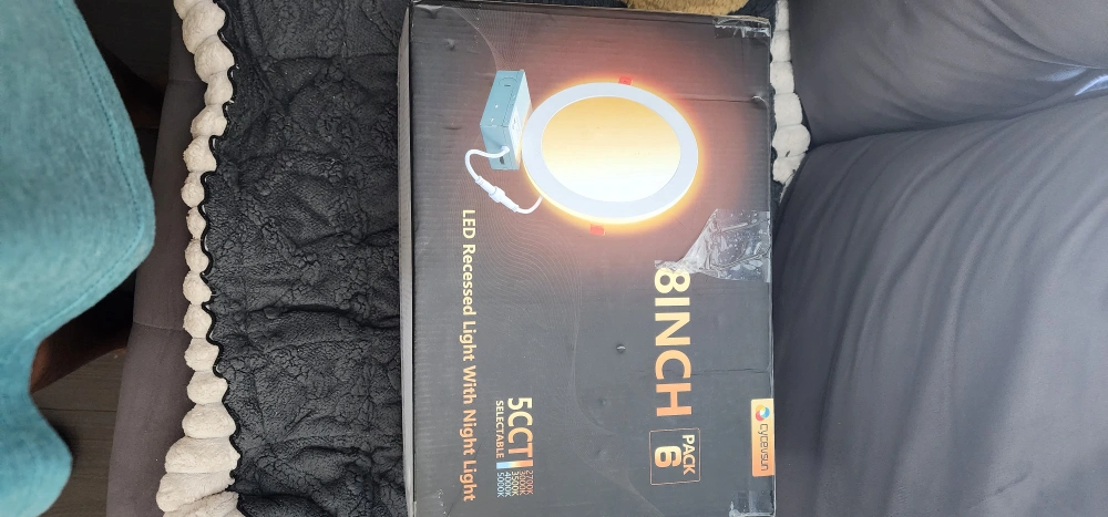 Selling a brand new pack of Cyseasun 8 inch LED recessed lights. This pack comes with 6 lights that are 5CCT selectable. Each light is 15W and dimmable. The advised hole cutout size is 21cm/8.27in. Box is included
