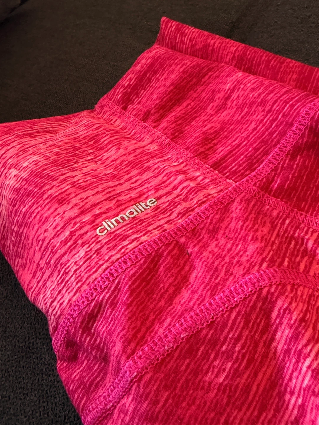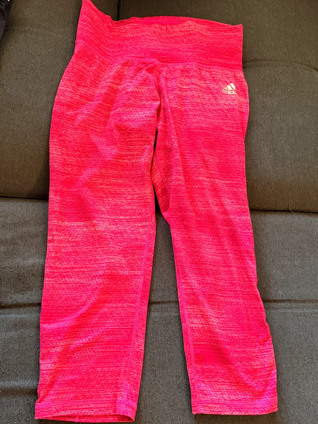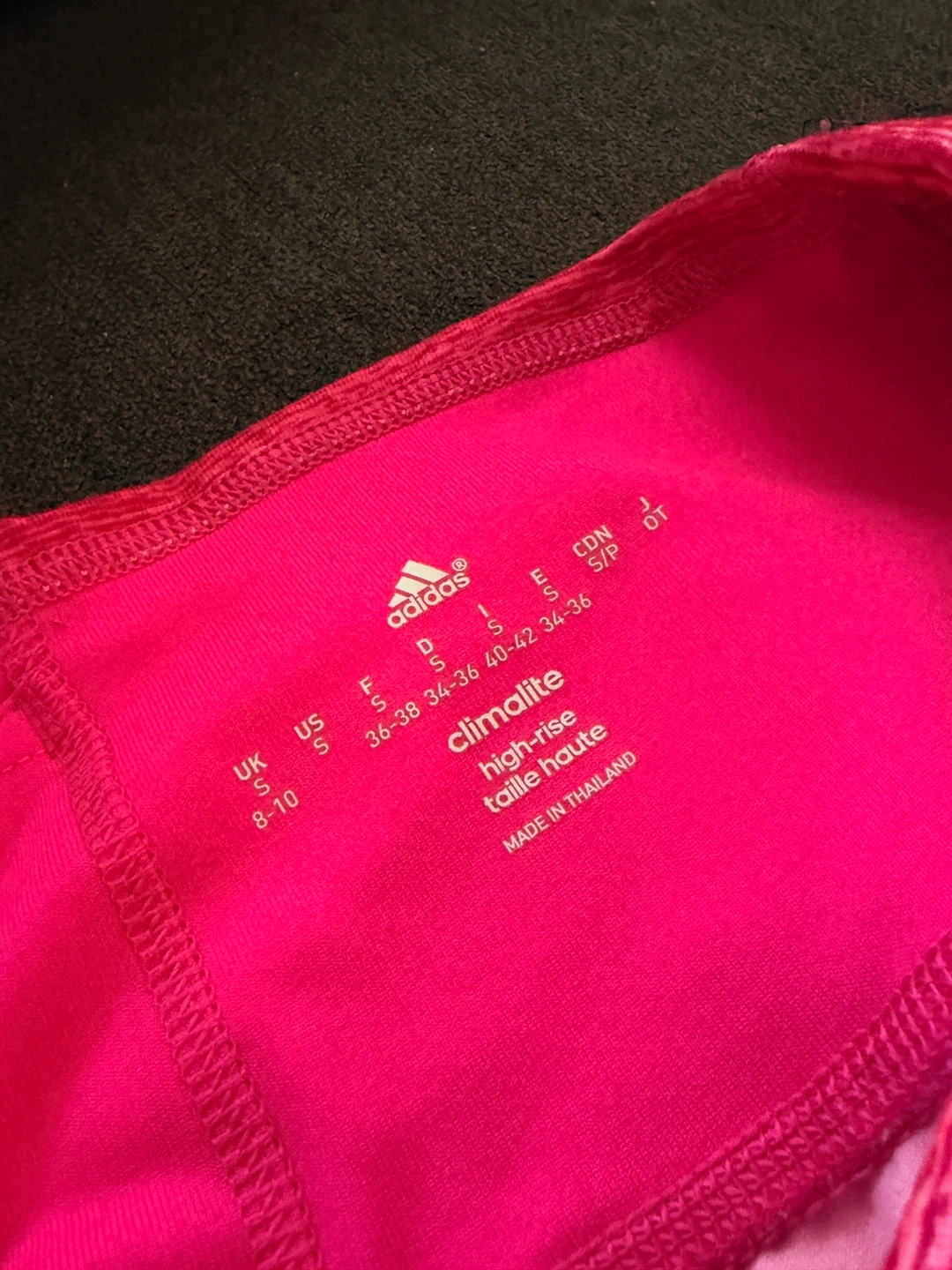 65These are a pair of Adidas Climalite high-rise leggings in pink. They are a size small and in great condition. The material is lightweight and breathable, perfect for workouts or everyday wear