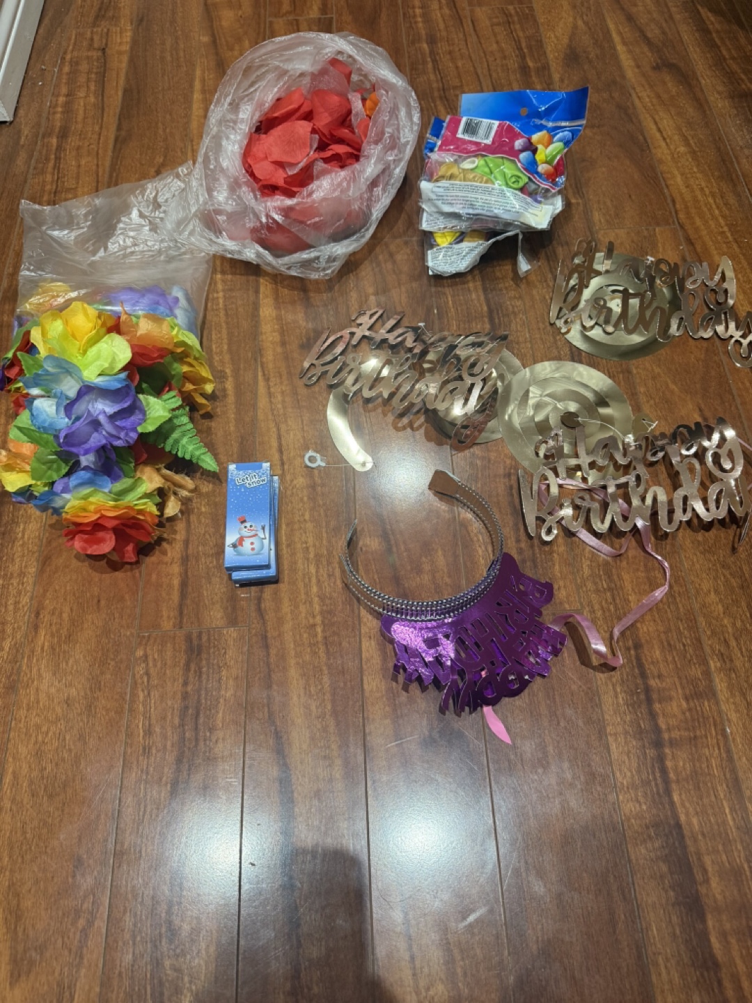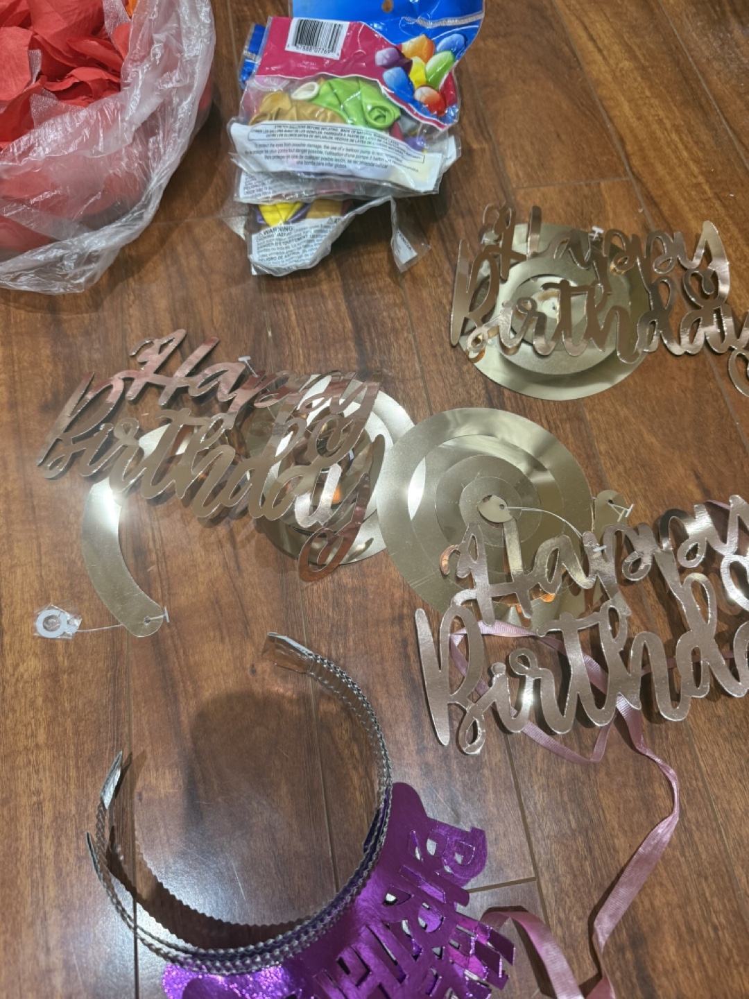 Selling a bundle of party decorations, perfect for a birthday celebration! Includes 'Happy Birthday' banners and other decorative pieces to make your party extra special