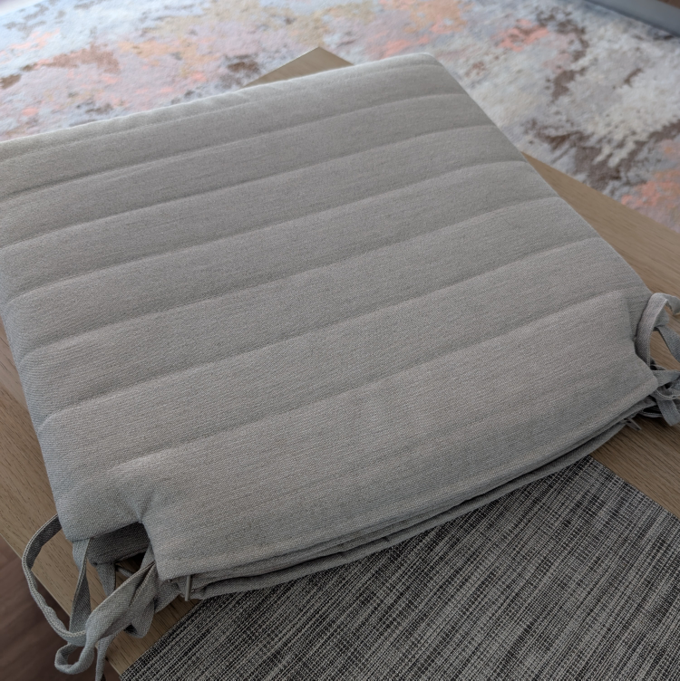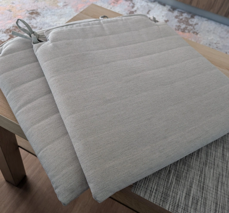 Selling 4 chair cushions! They are beige and in great condition. Perfect for adding a bit of comfort to your chairs.