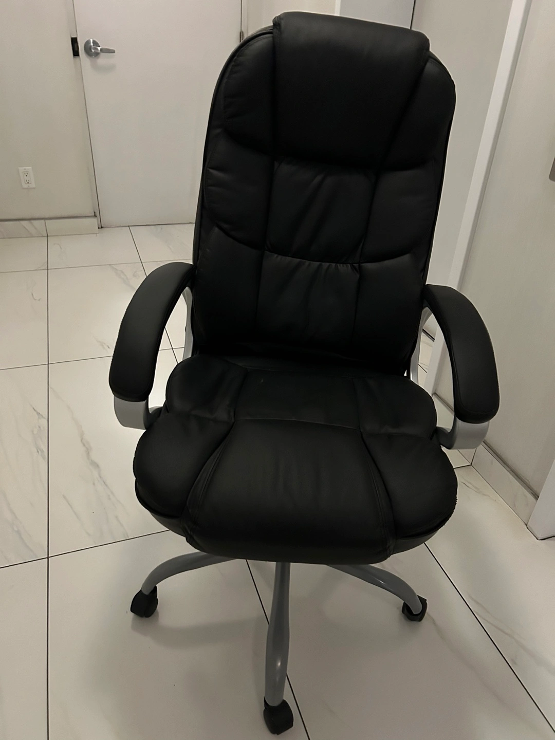 Selling a black office chair, model FDW10617. It's in great shape and ready for a new home office! The chair has a comfortable, padded design and is perfect for long hours of work or study. Made in Vietnam
