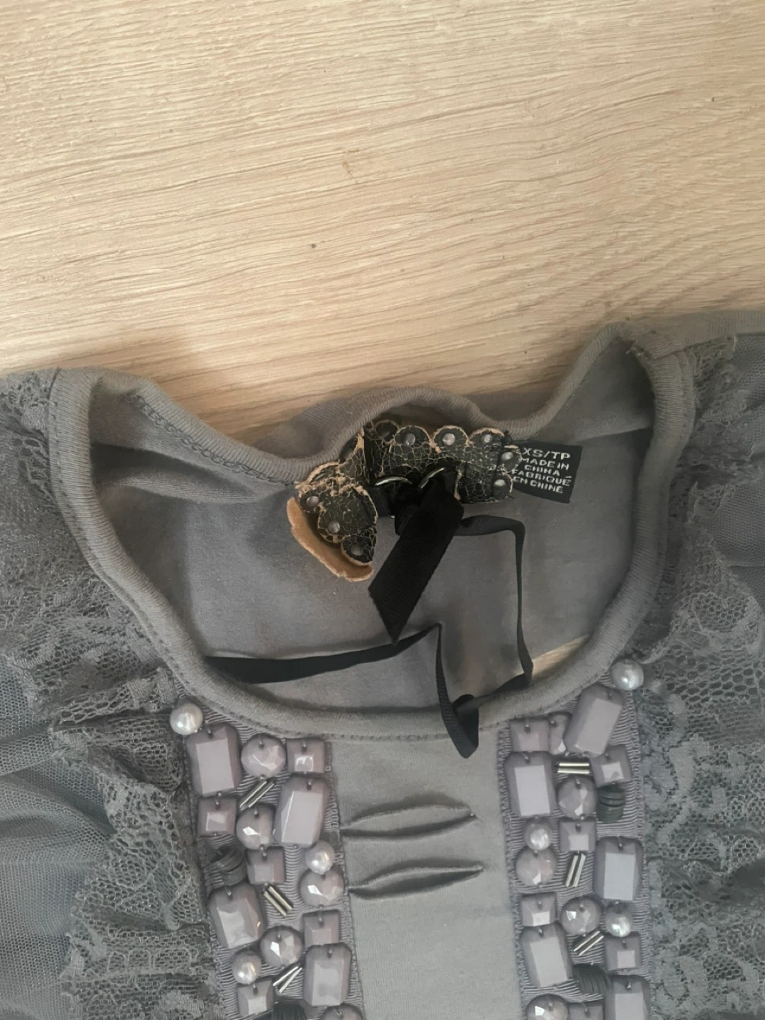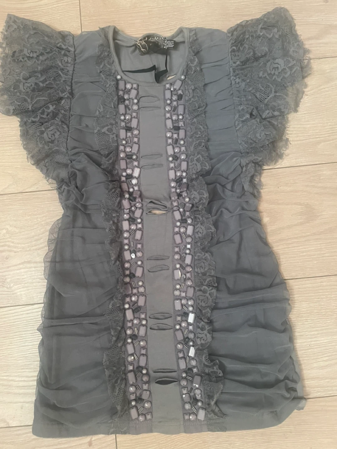 Selling designer top in size s/m It's a lovely olive green colour with lace detailing and some unique embellishments. Perfect for dressing up or down!