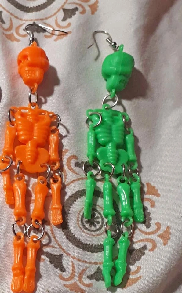 Orange and green skeletons lightweight dangle earrings. Located in the hunt club park area near Conroy and Johnston road
