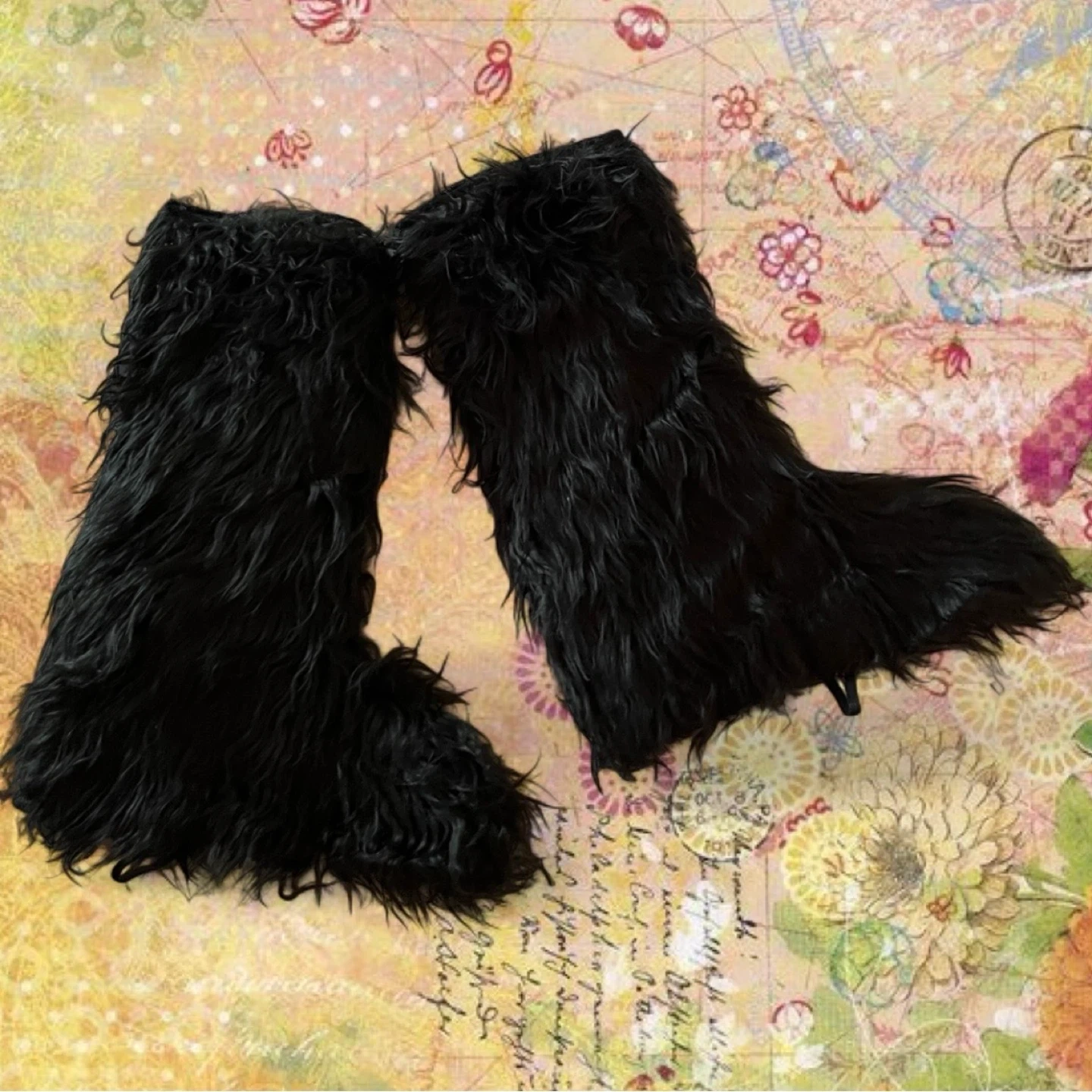 Selling a pair of fuzzy black boots! They are in great condition and ready for a new home. These boots are sure to keep your feet warm and stylish during the colder months