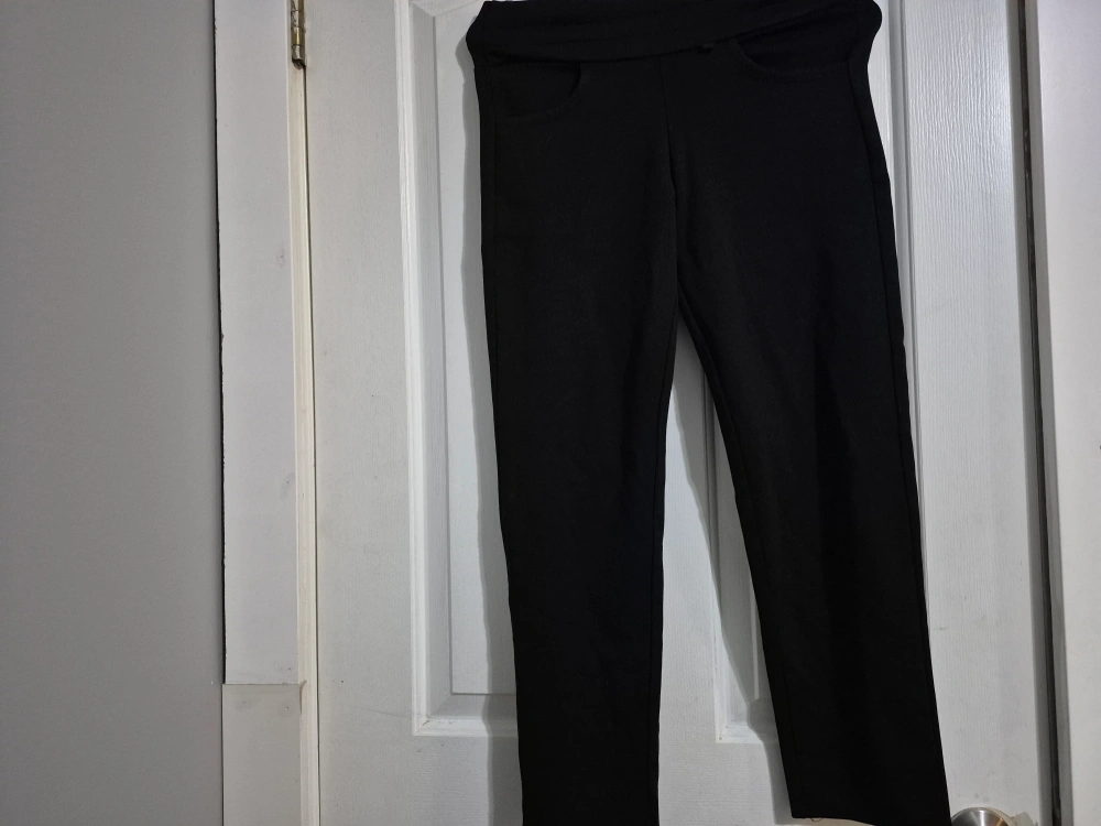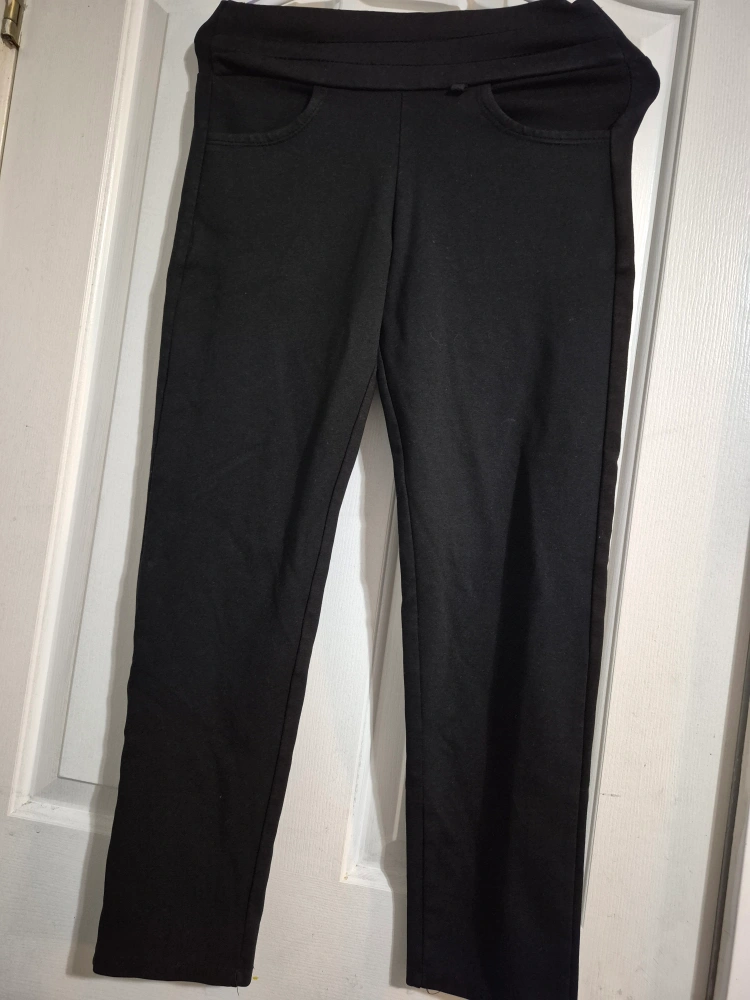 A pair of black pants in good condition! They look great and are ready for a new home. Just worn two times, doesn't fit me now. but one of my fav. as it's fabric is super comfortable and great for work.