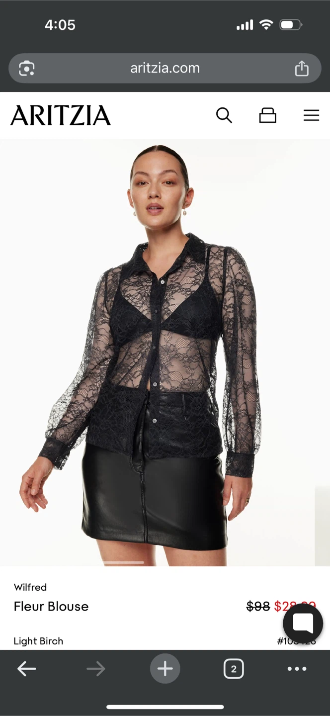 Aritzia Wilfred Fleur Blouse - 2XS Black Lace