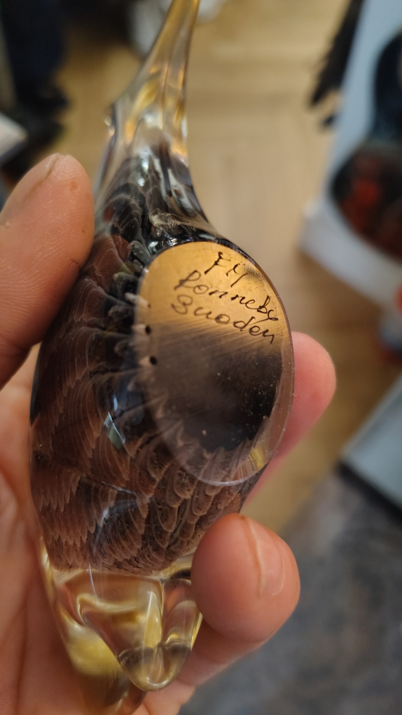 Beautiful glass fish sculpture made by FM Ronneby signed. It is in excellent condition and would look great in any home!