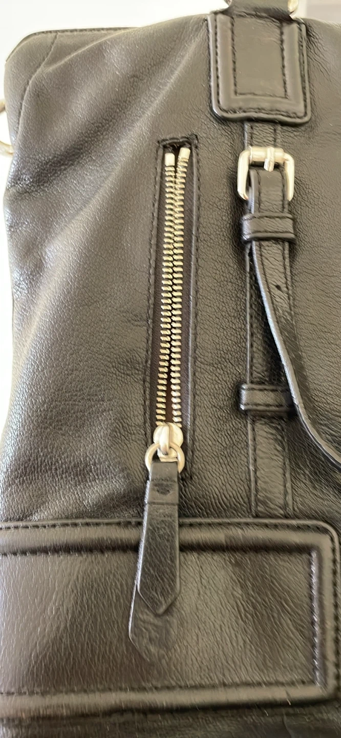 COLE HAAN SOFT LEATHER HANDBAG. IMMACULATE CONDITION INSIDE AND OUT. BARGAIN ORICE MOVING. SO PRICED FOR QUICK SALE. BLACK WITH METAL ACCENTS AND ZIPPERS. Pick up in Scarborough midland and Eglinton