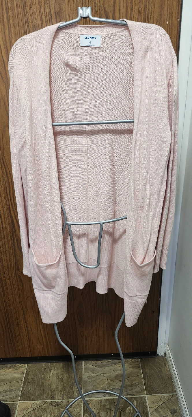 A comfy Old Navy cardigan in a lovely light pink colour. It's an XL size and perfect for layering on those cooler days. Great for adding a touch of warmth and style to any outfit!