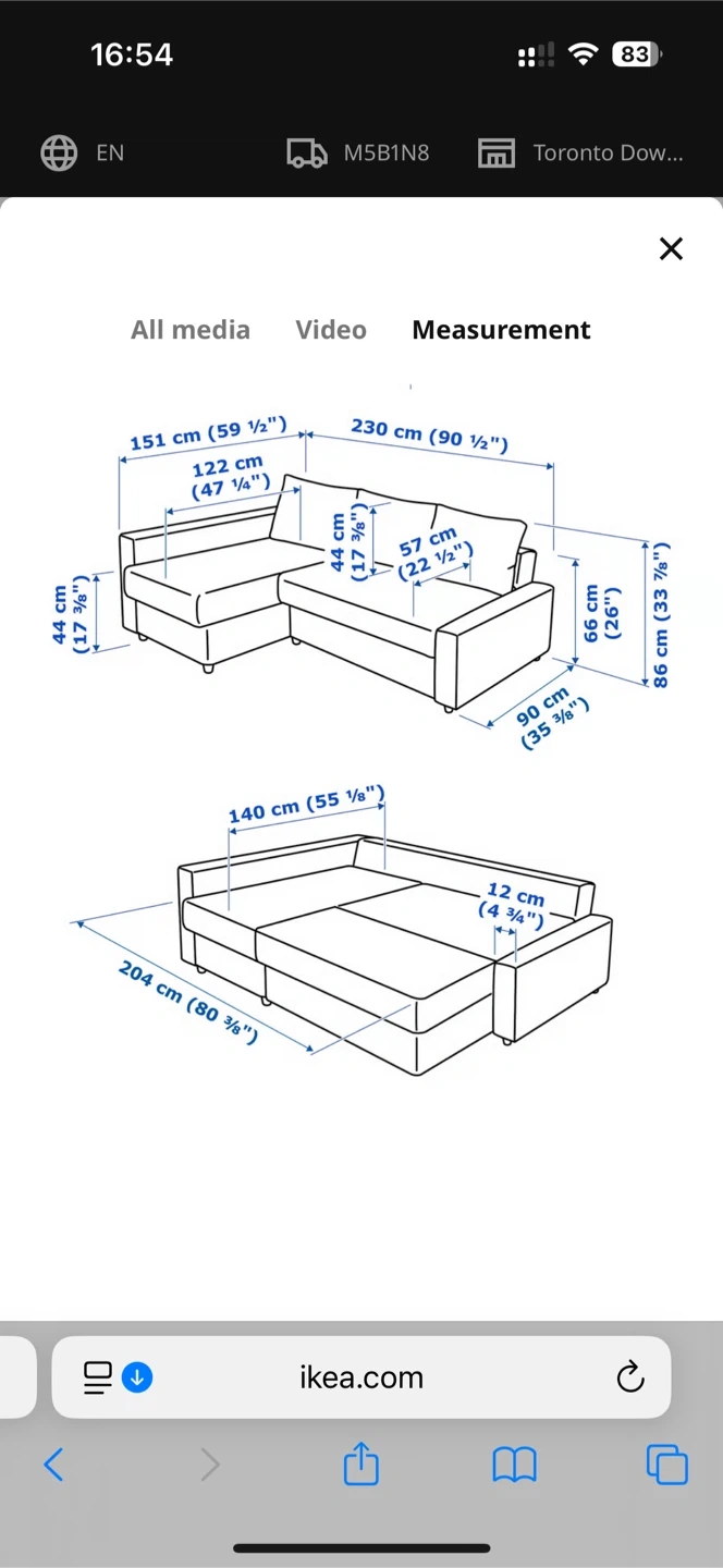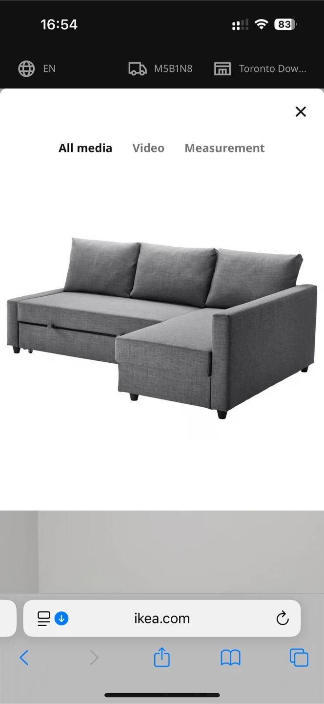 Selling a grey IKEA Friheten sleeper sofa. It's in great shape and ready for a new home! This sofa easily converts into a bed, perfect for guests or small spaces. The dimensions are approximately 230 cm x 151 cm x 86 cm.