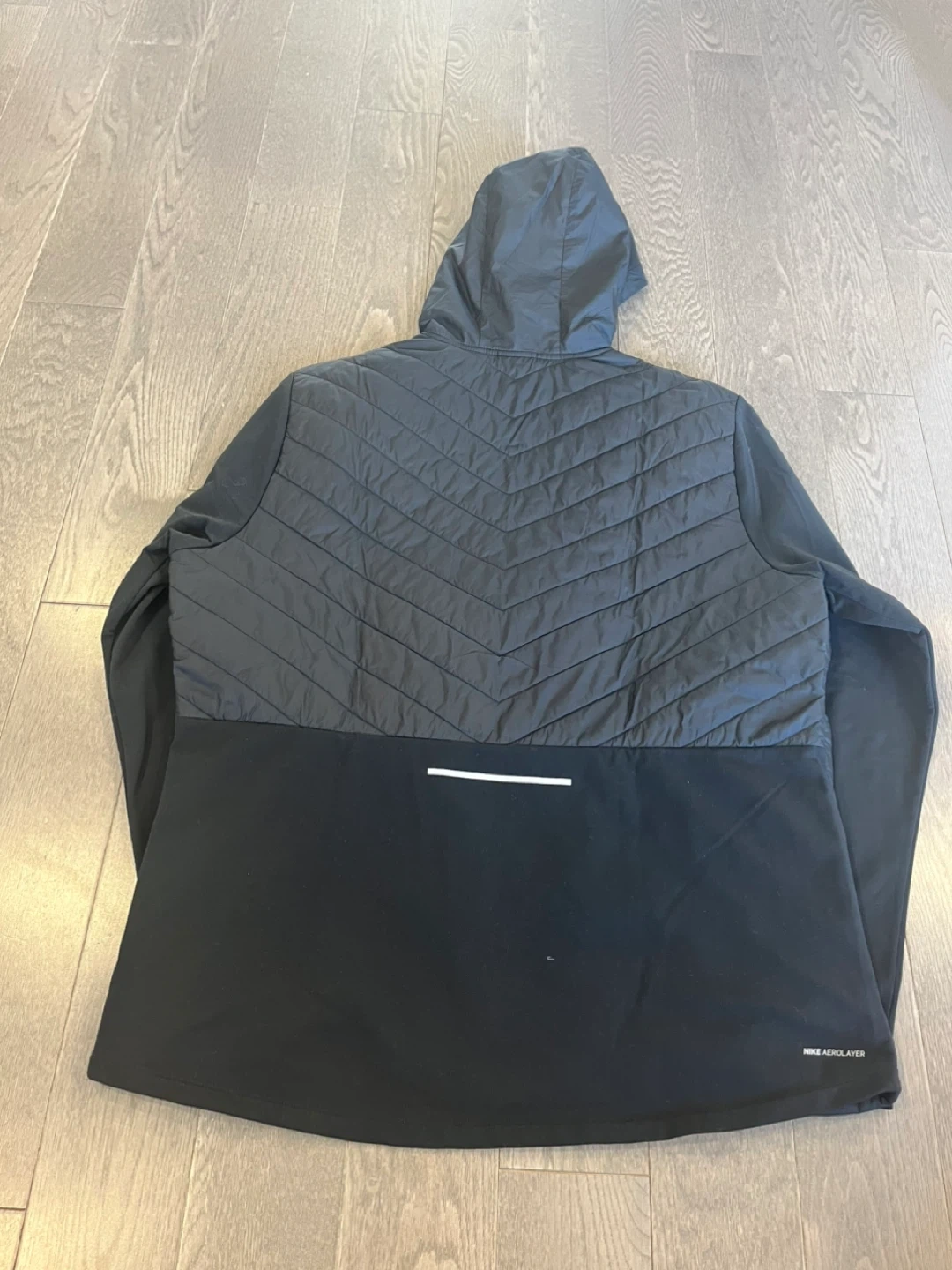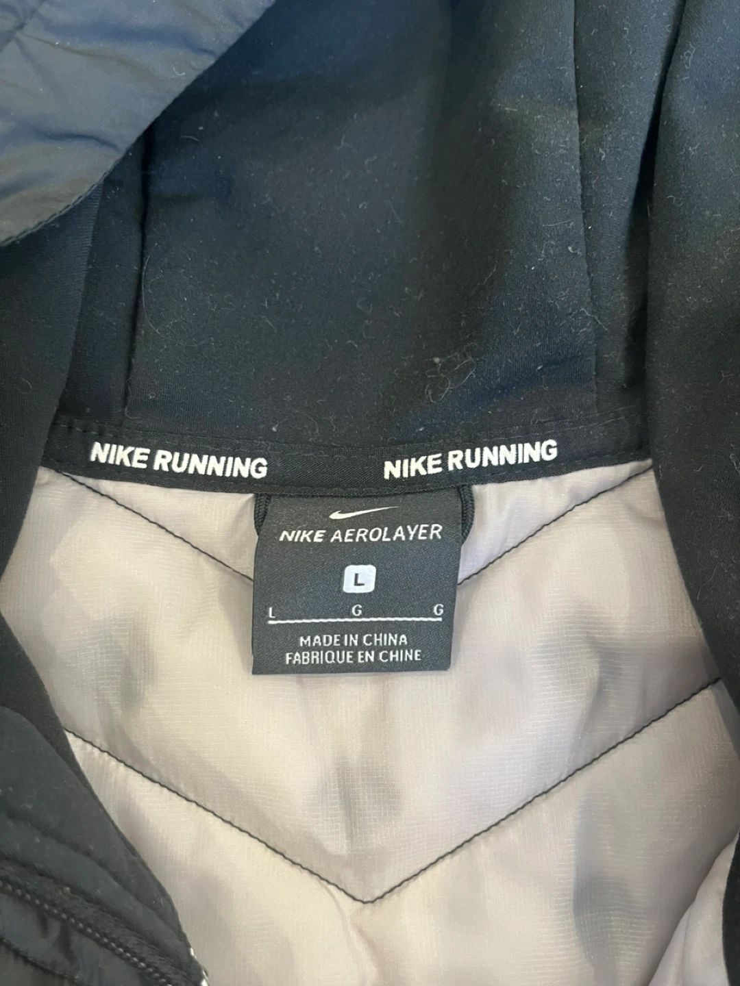 Selling a Nike Aerolayer running jacket in great condition! It's a size large and features a quilted design on the front and back. Perfect for staying warm during your runs!