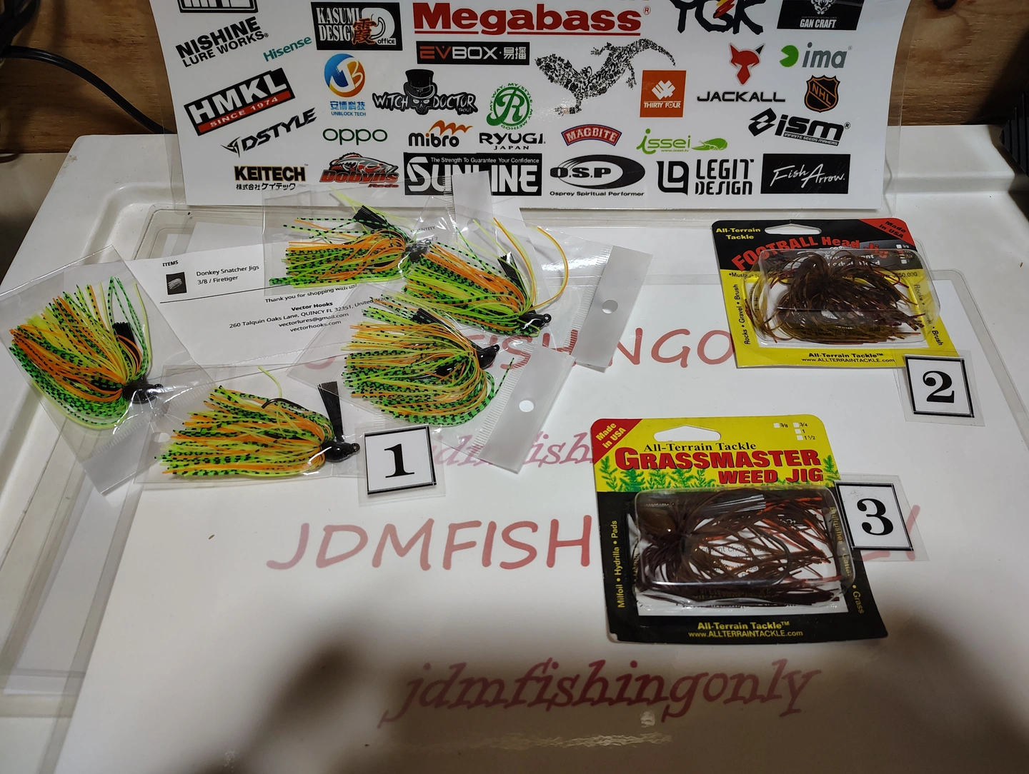 Various Branded Jigs with Brush Weed Guard