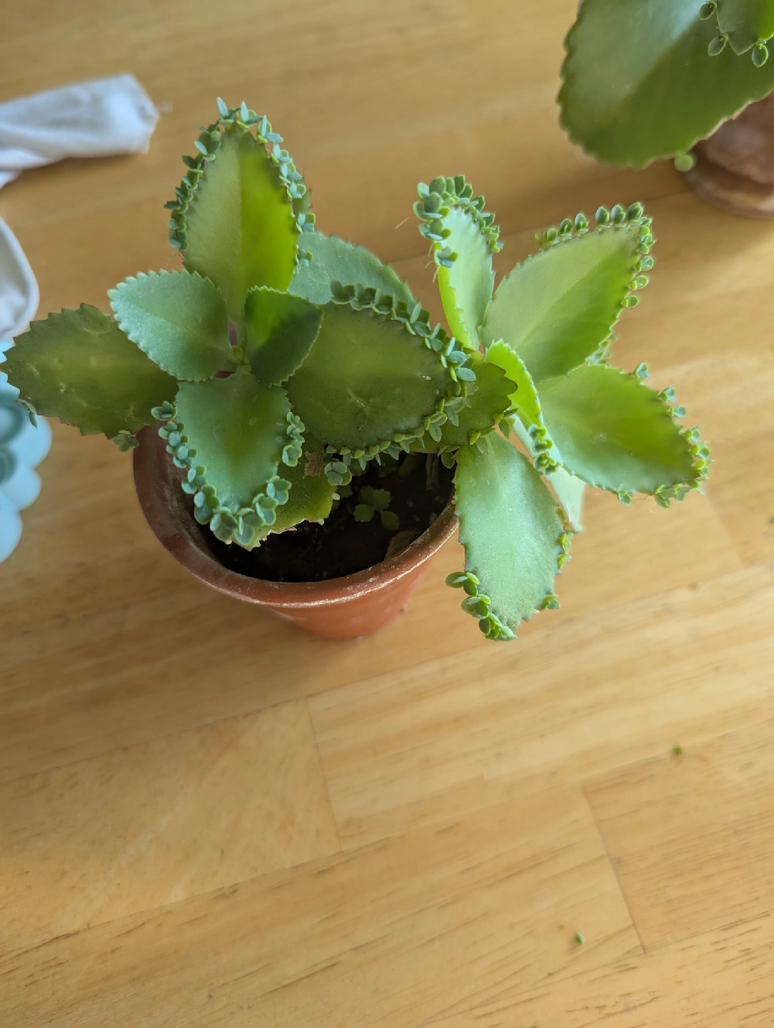 Selling a healthy Mother of Thousands plant in a terracotta pot! It's a unique and easy-to-care-for succulent that produces tiny plantlets along the edges of its leaves. These plantlets readily drop and root, creating new plants. It's currently thriving and ready for a new home!