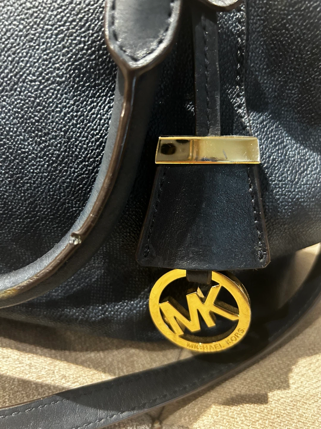 A stylish dark blue leather handbag from Michael Kors. This bag is in great condition and features a crossbody strap for versatile wear. Perfect for everyday use!