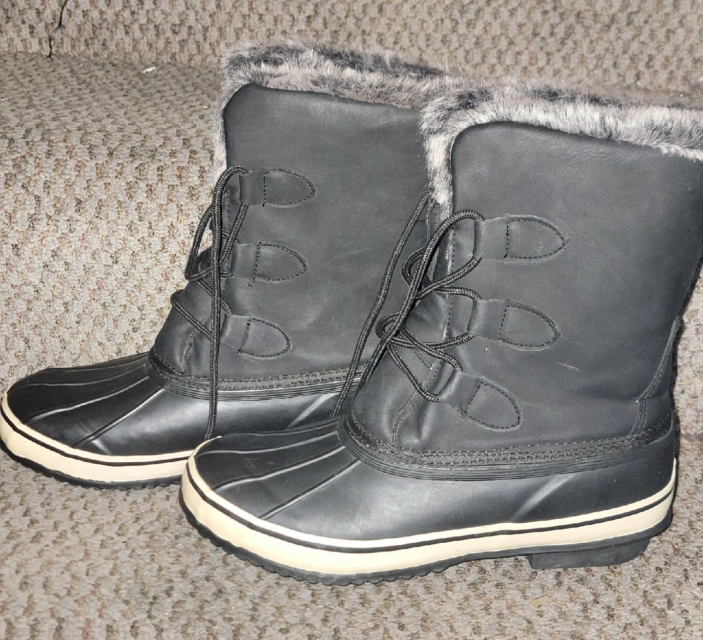 Cozy black winter boots with faux fur trim! They are size 8. They are water resistant and have 3M Thinsulate insulation to keep your feet warm and dry all winter long