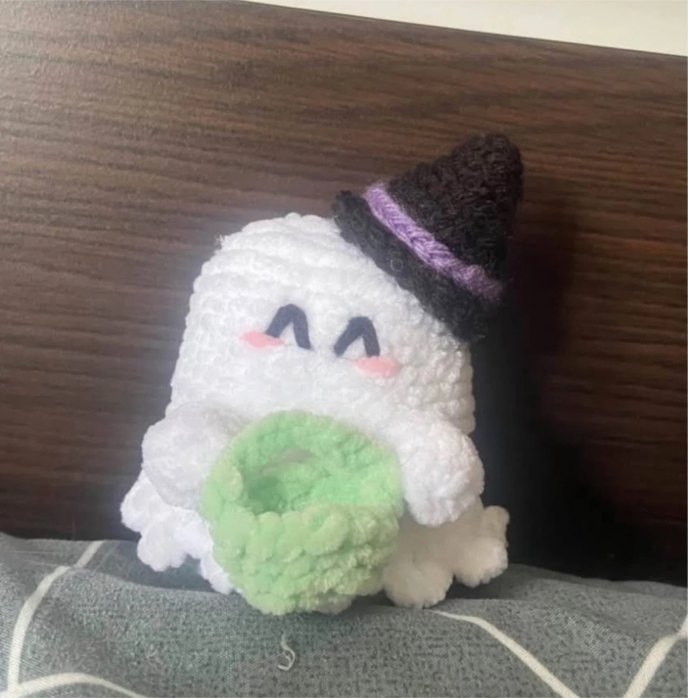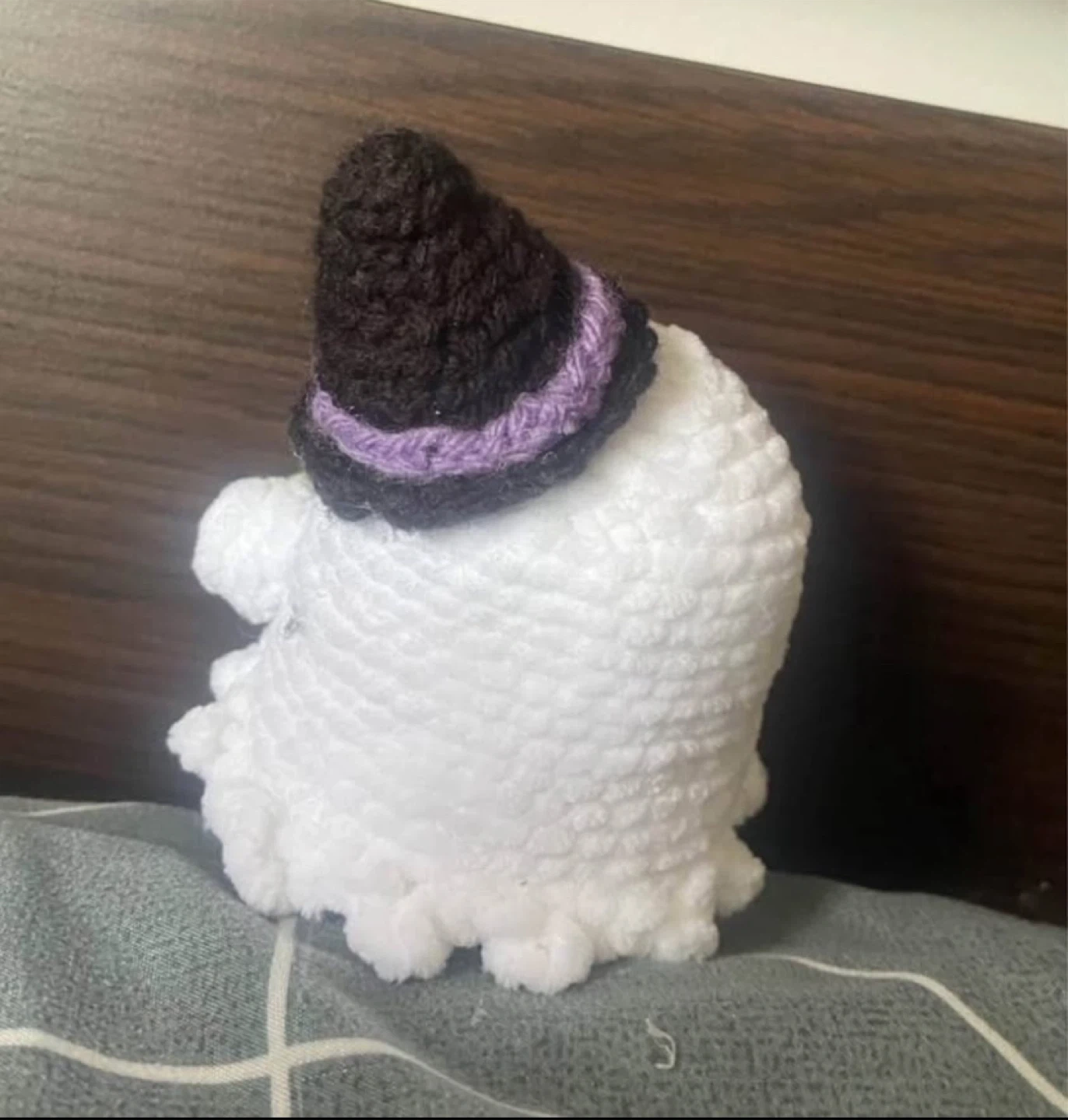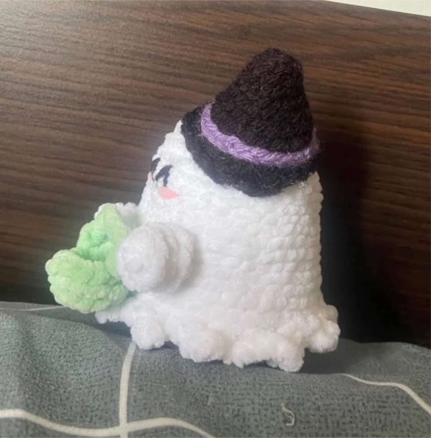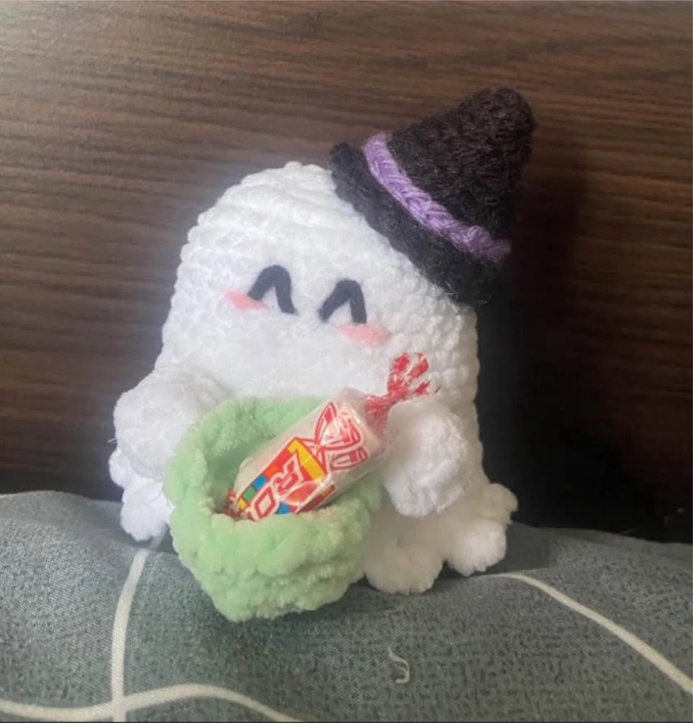 This adorable ghost is ready for trick or treating! It's white with a cute little black hat and a green candy basket. Perfect for adding a spooky touch to your decor! And I only accept cash please no online payment