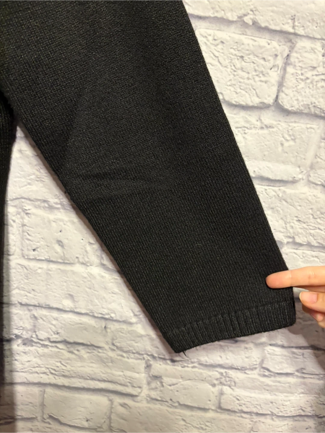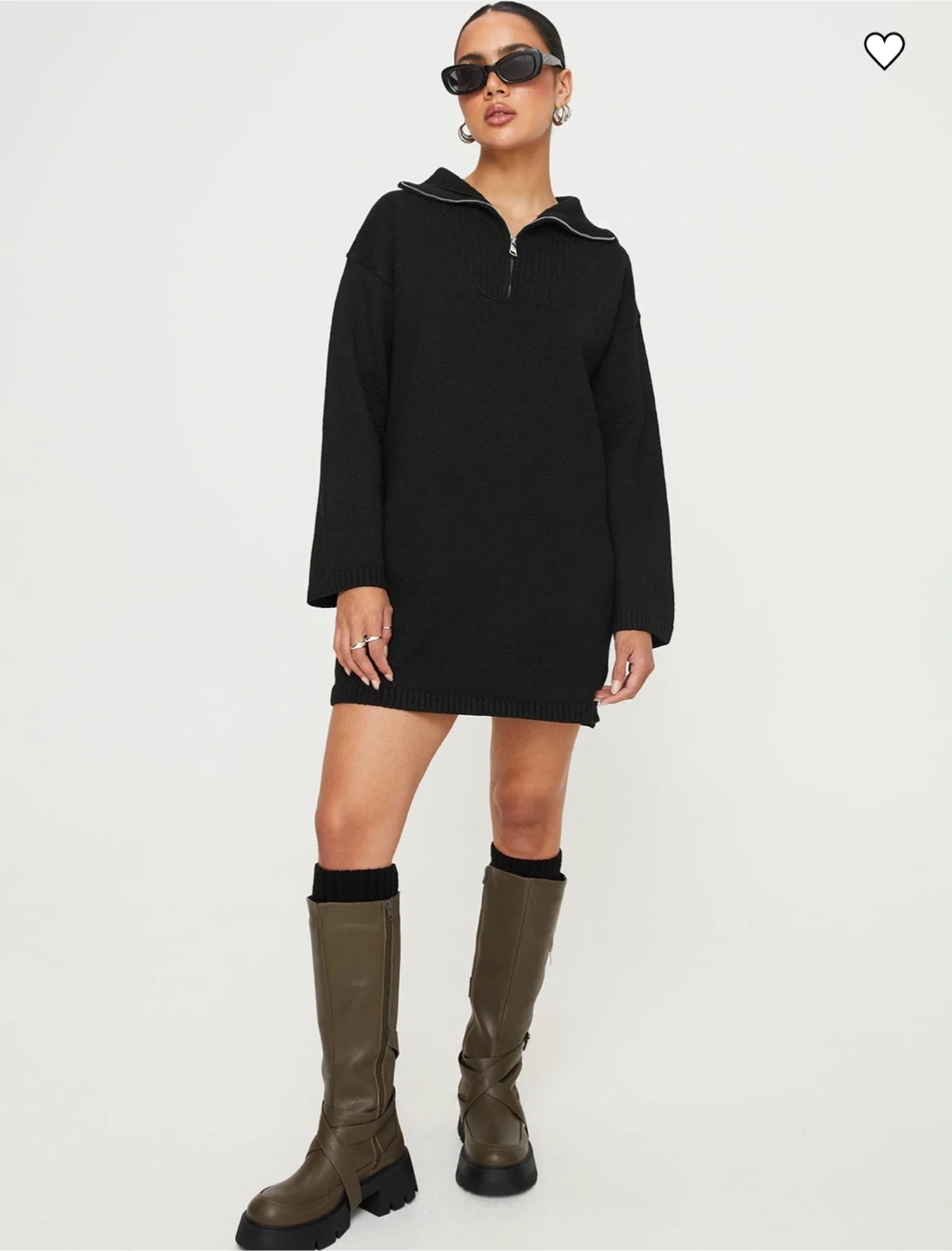 Here's a stylish black knit sweater dress with a zip-up collar. It's a versatile piece that can be dressed up or down. Perfect for adding a touch of cozy chic to your wardrobe! Pick up only.