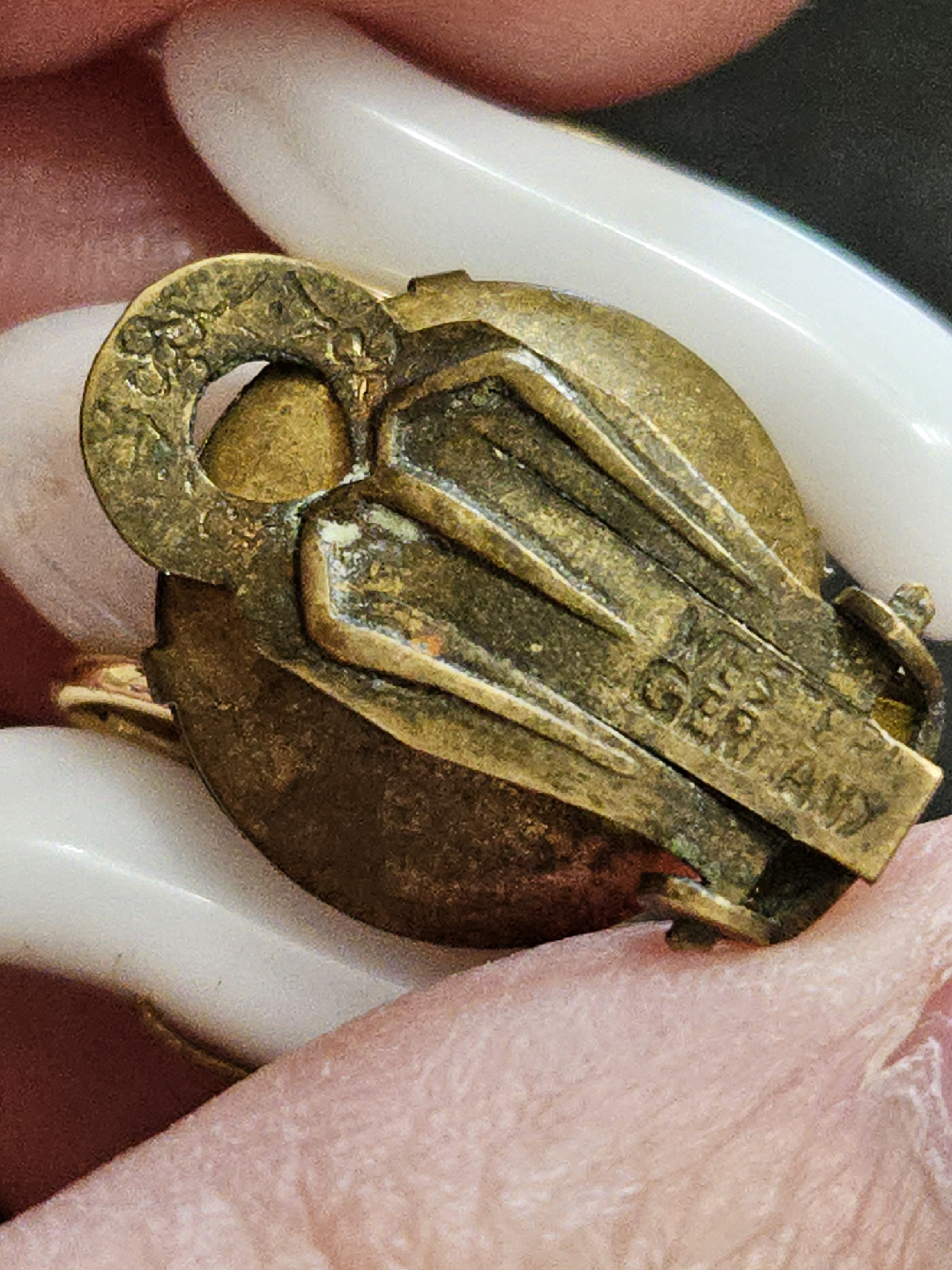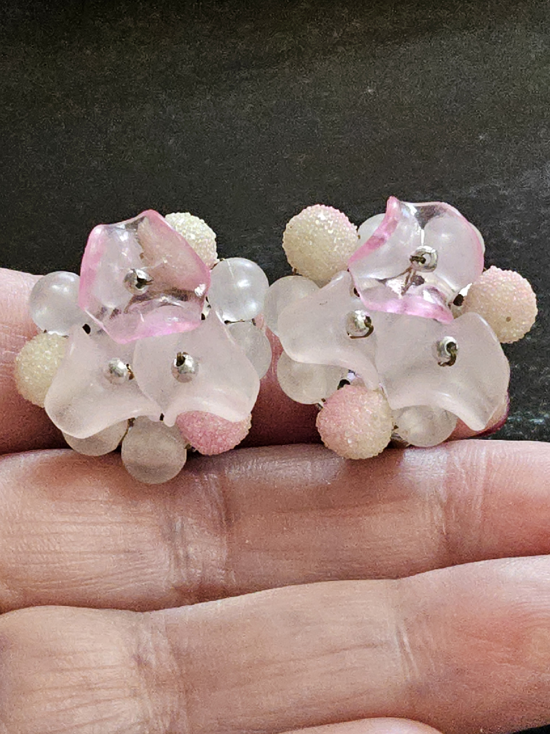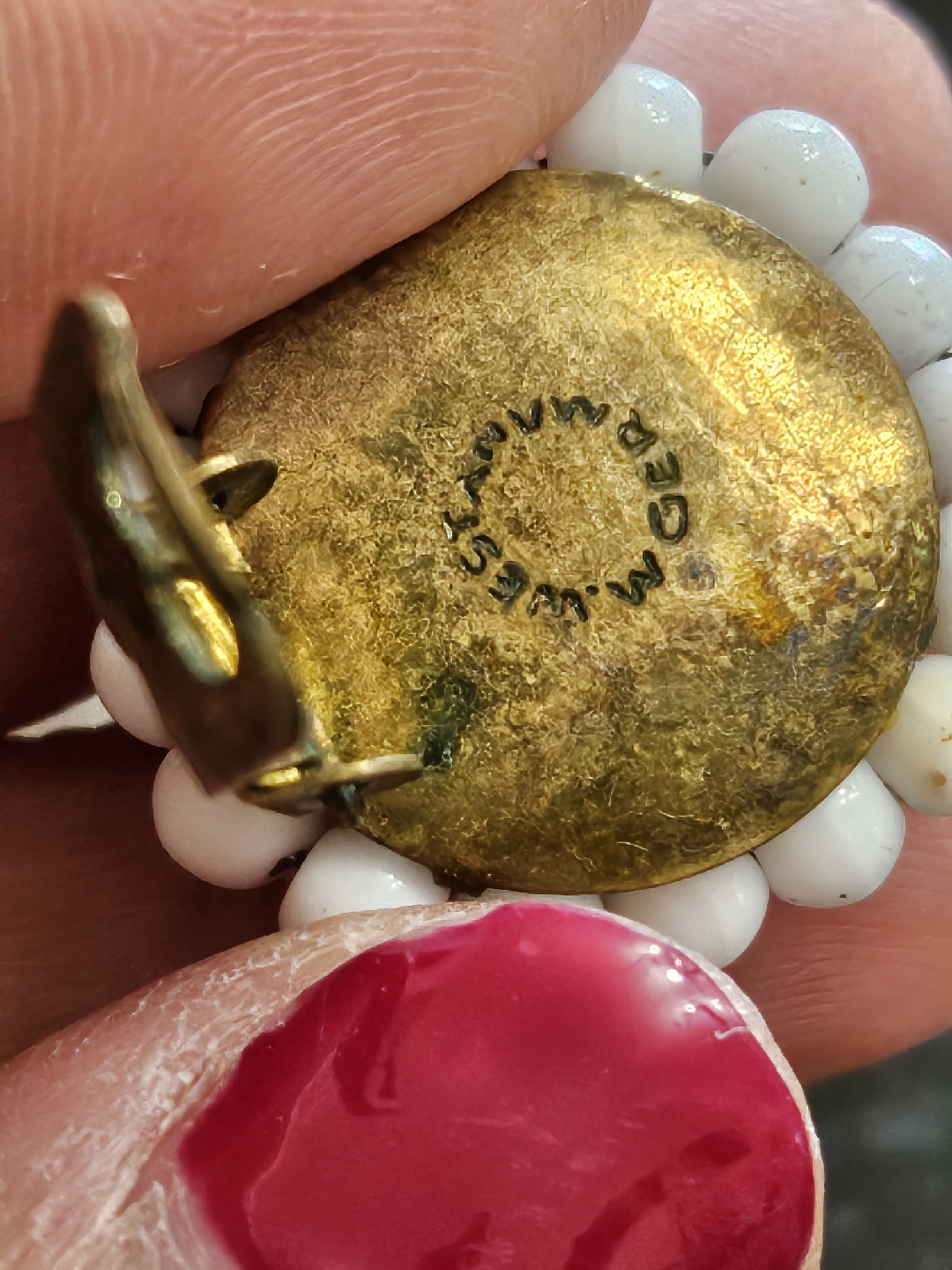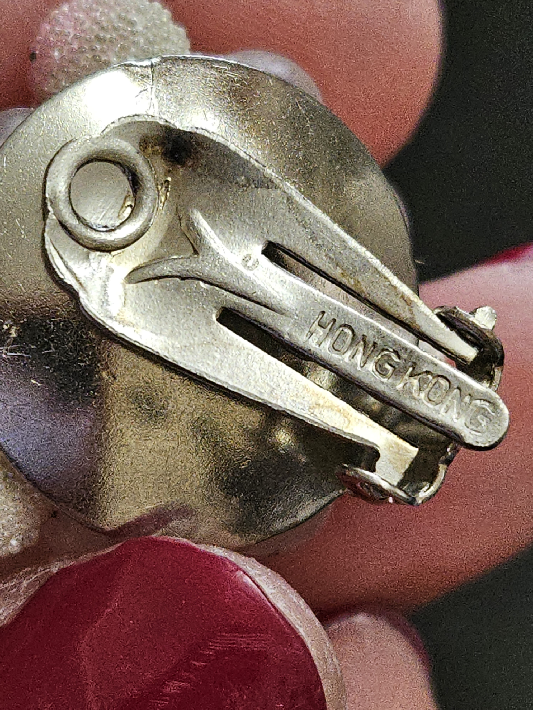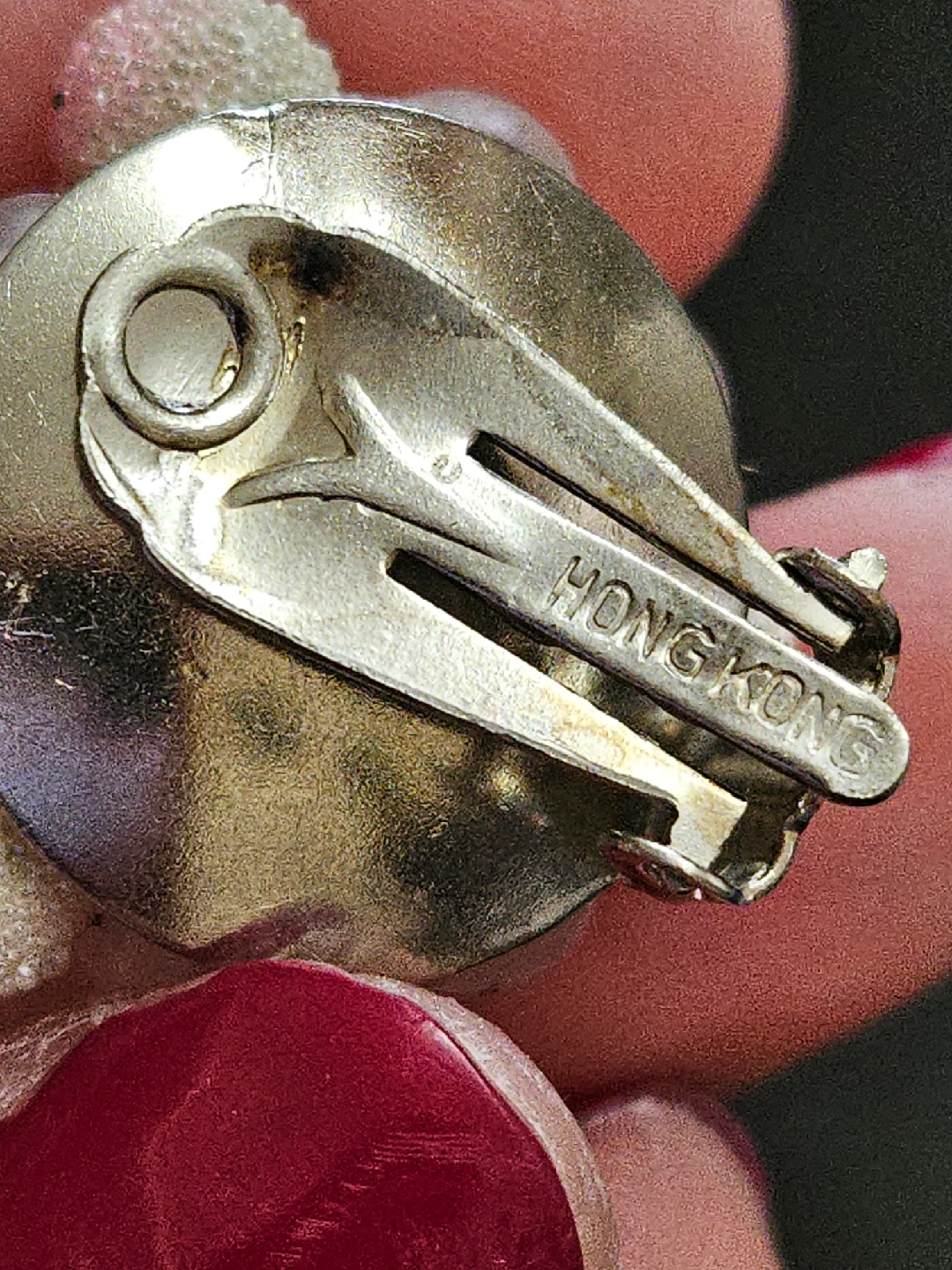 One pair is a striped stone with white beads, another is a white and gold design, and the third is a floral design.