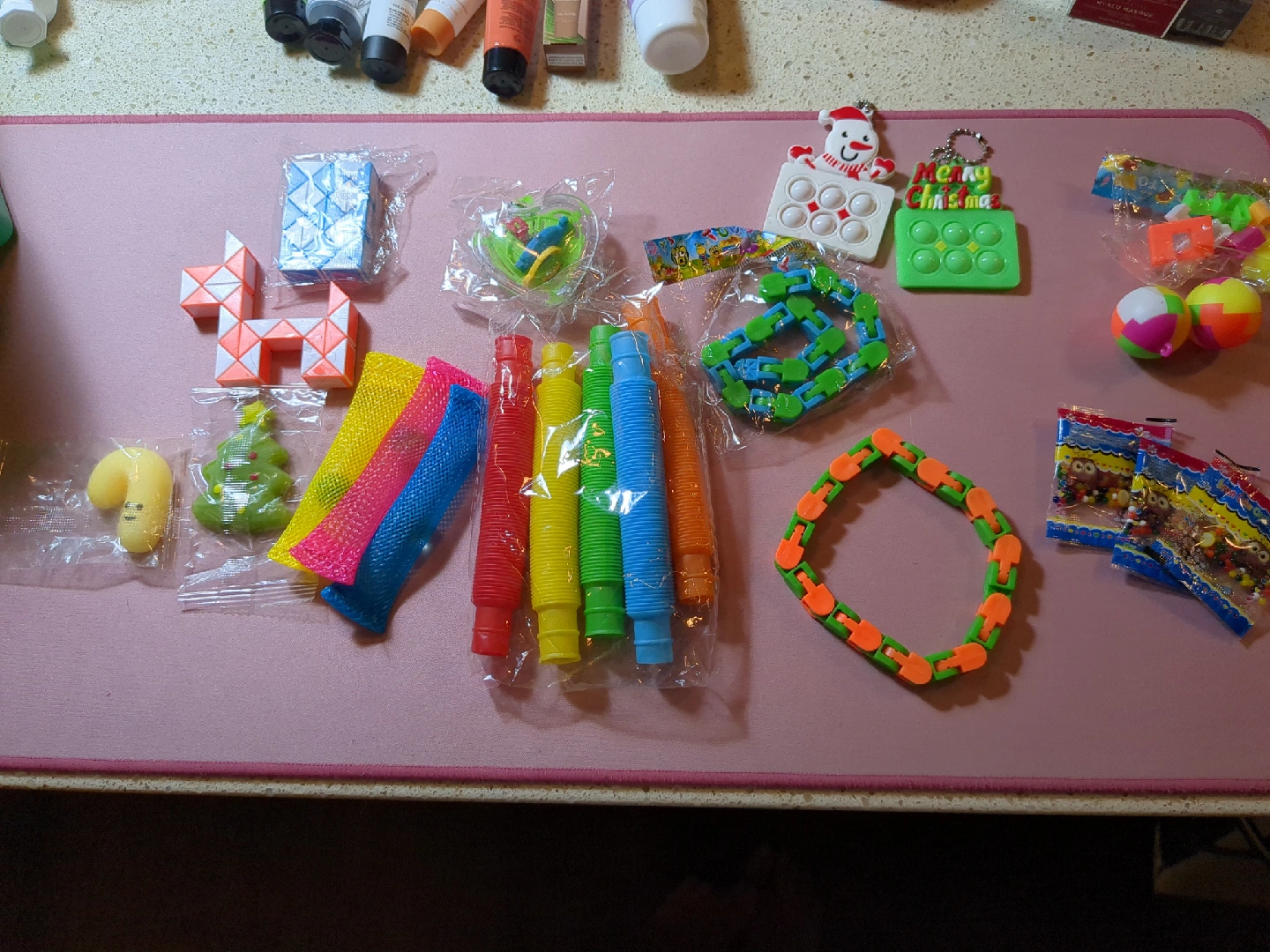 A collection of fidget toys! Great for stress relief and sensory play. Includes various shapes, colours, and textures. Perfect for kids and adults alike!