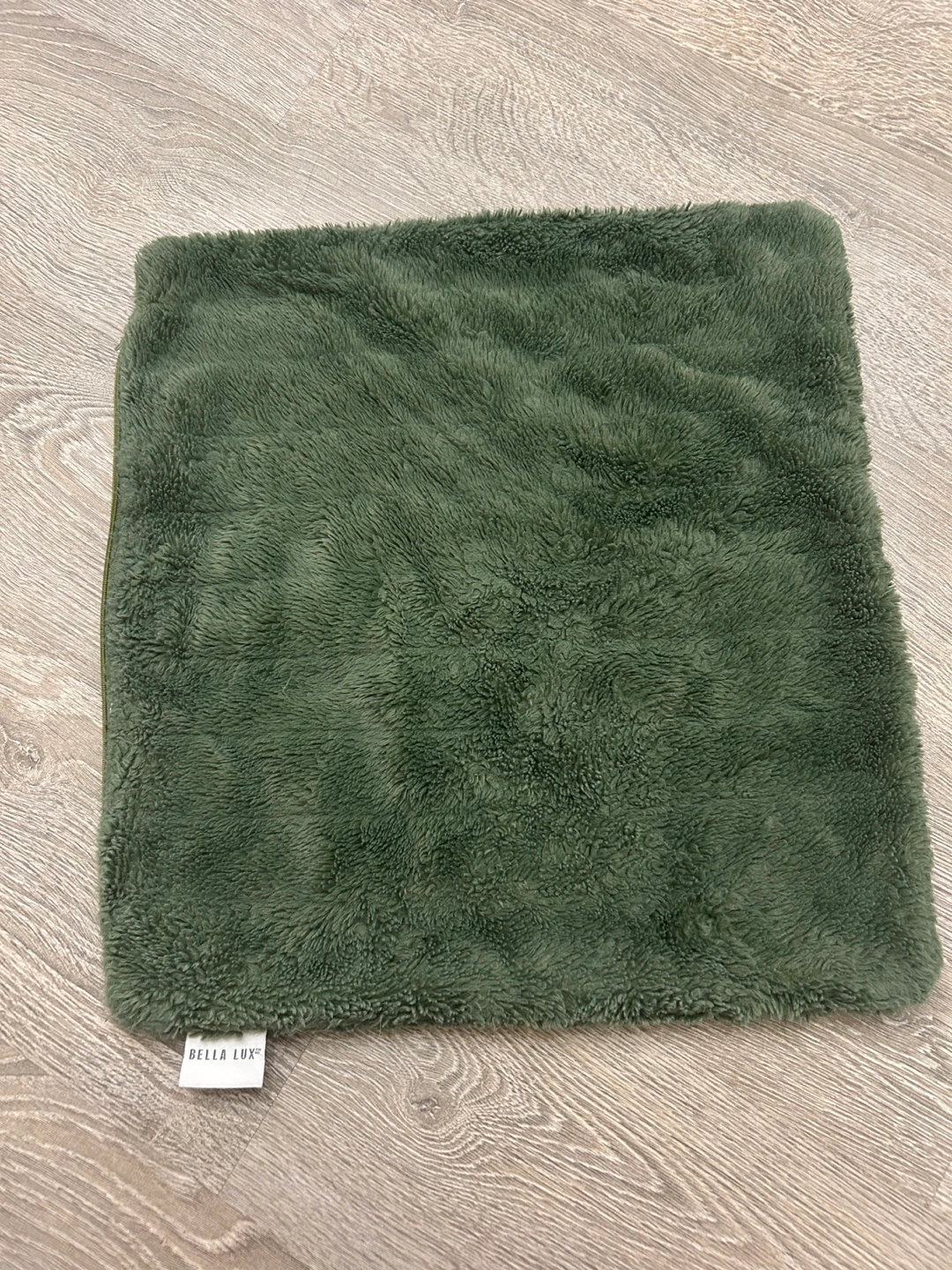 Selling a Bella Lux throw pillow case in a lovely green colour. It has a soft, furry texture that would add a cozy touch to any room!