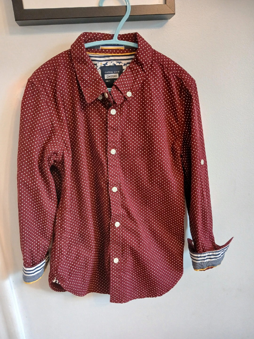 🧡Cactus Boys Burgundy Polka Dot Shirt - Size 7