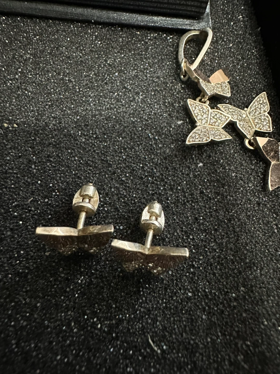 339Selling a beautiful butterfly pendant and earrings set. Sterling silver 925 and gold