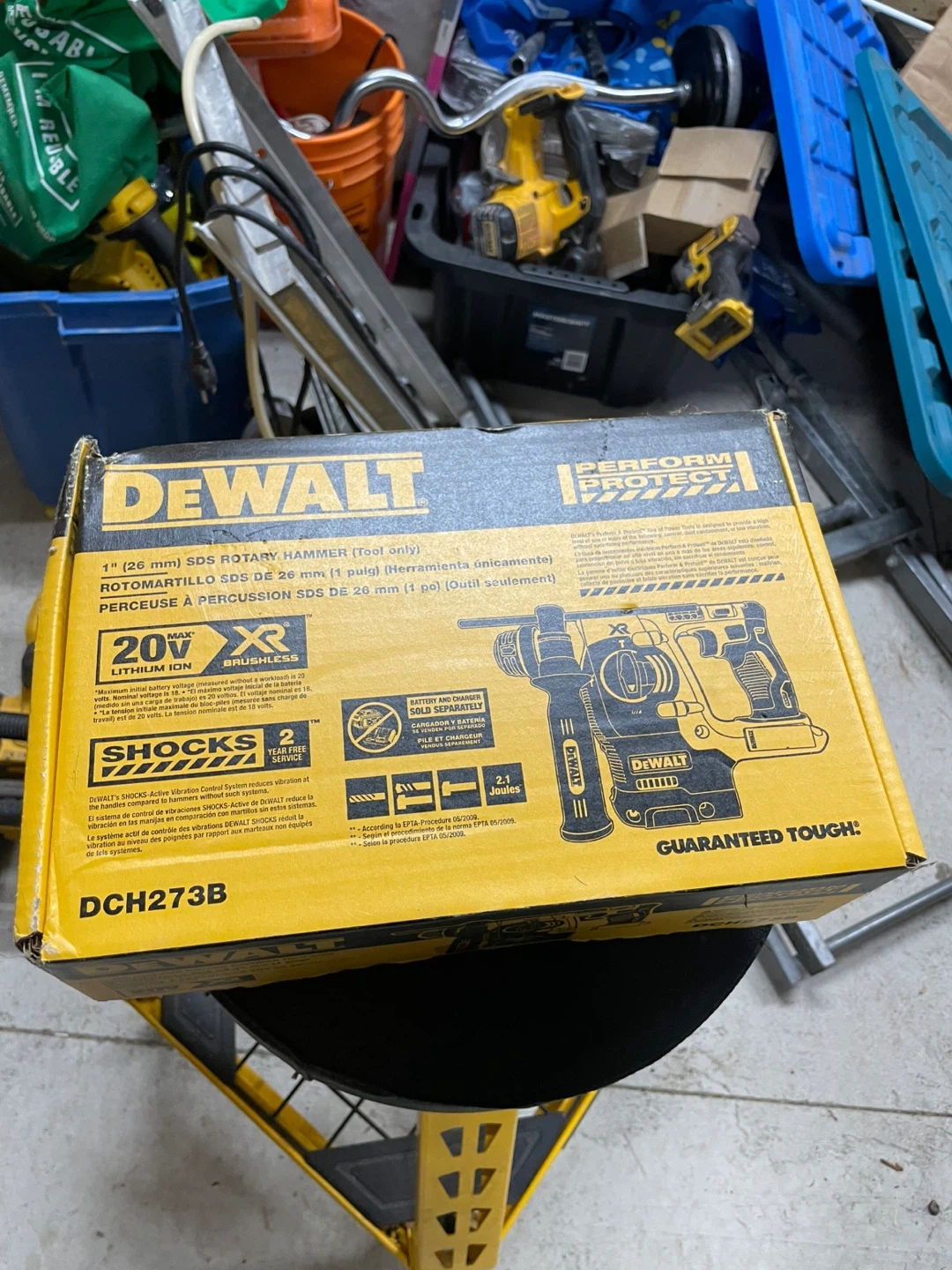 Selling a brand new DeWalt 20V MAX Brushless 1" SDS Rotary Hammer (DCH273B). It's a tool only, meaning the battery and charger are sold separately. This rotary hammer features DeWalt's SHOCKS-Active Vibration Control System, which reduces vibration at the handles compared to hammers without such systems. It delivers 2.1 Joules of impact energy and is part of the 20V MAX lithium-ion series