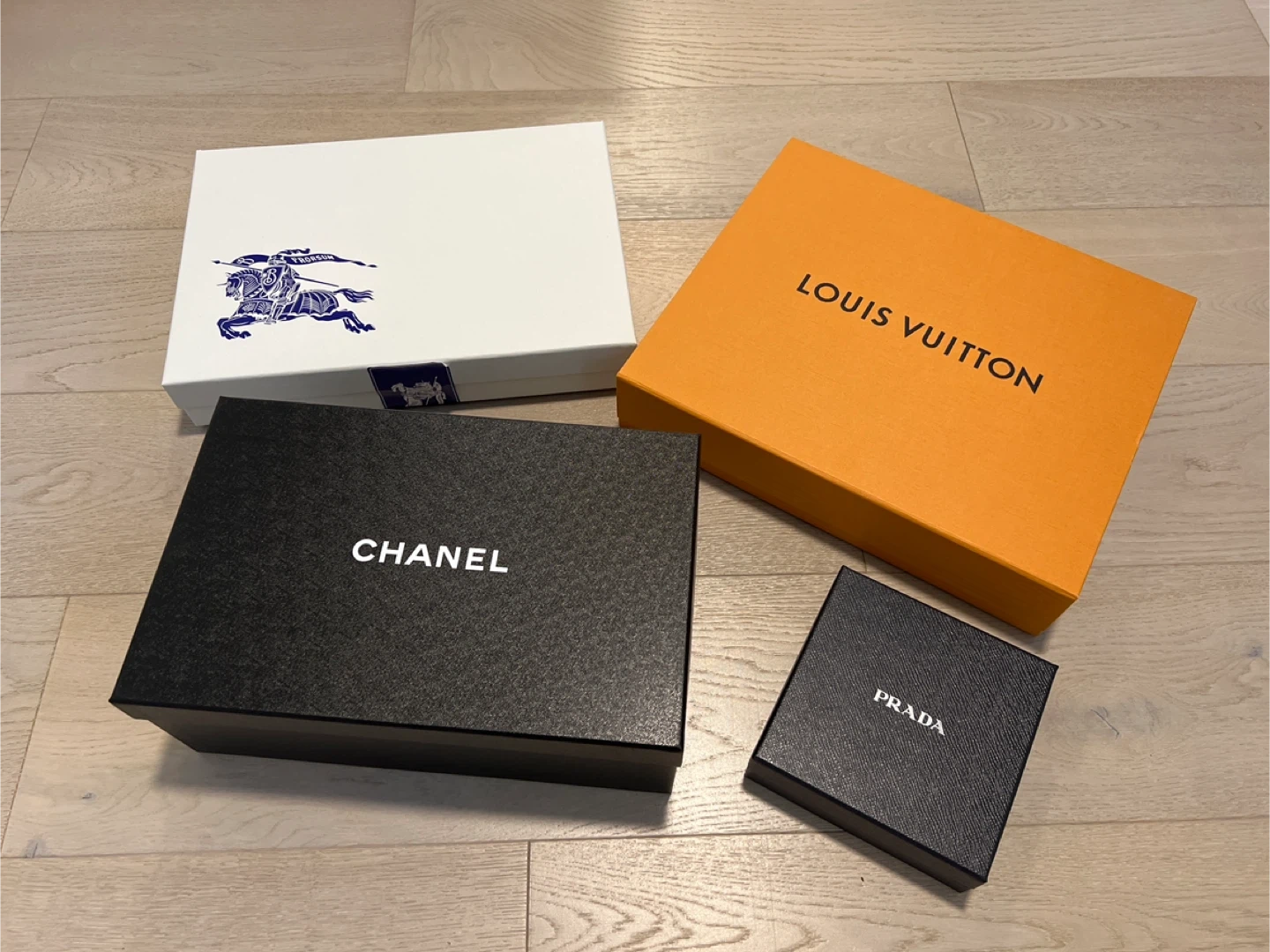 Luxury Brand Empty Boxes: Burberry, Louis Vuitton, Chanel, Prada