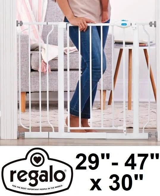 35REGALO EASY OPEN EXTENDABLE EXTRA WIDE SAFTEY GATE - 29" TO 47" X 30" - WHITE ITEM CONDITION: Brand new PACKAGE CONDITION: Retail packaging (distressed) 📍Creditview and Rathburn