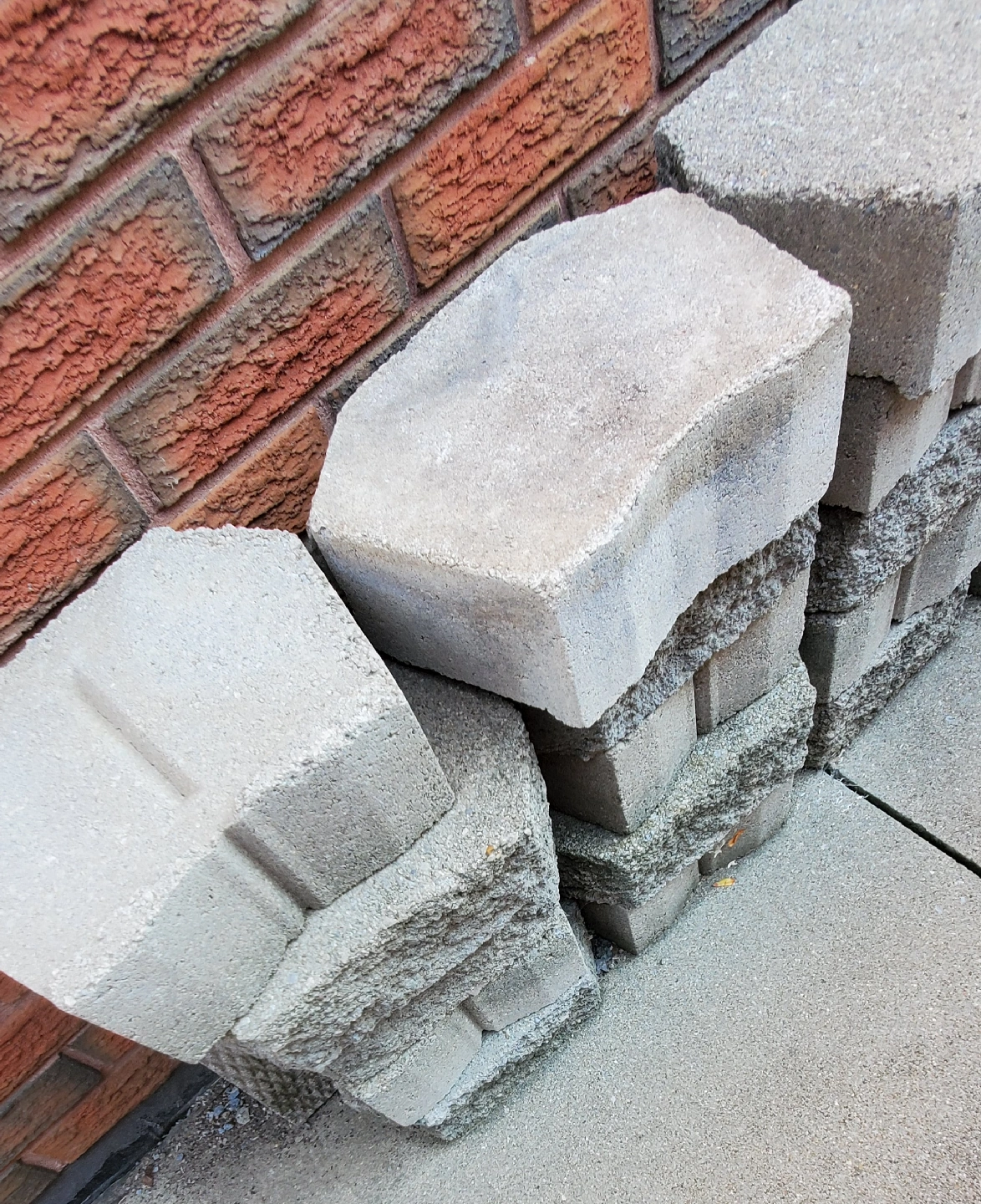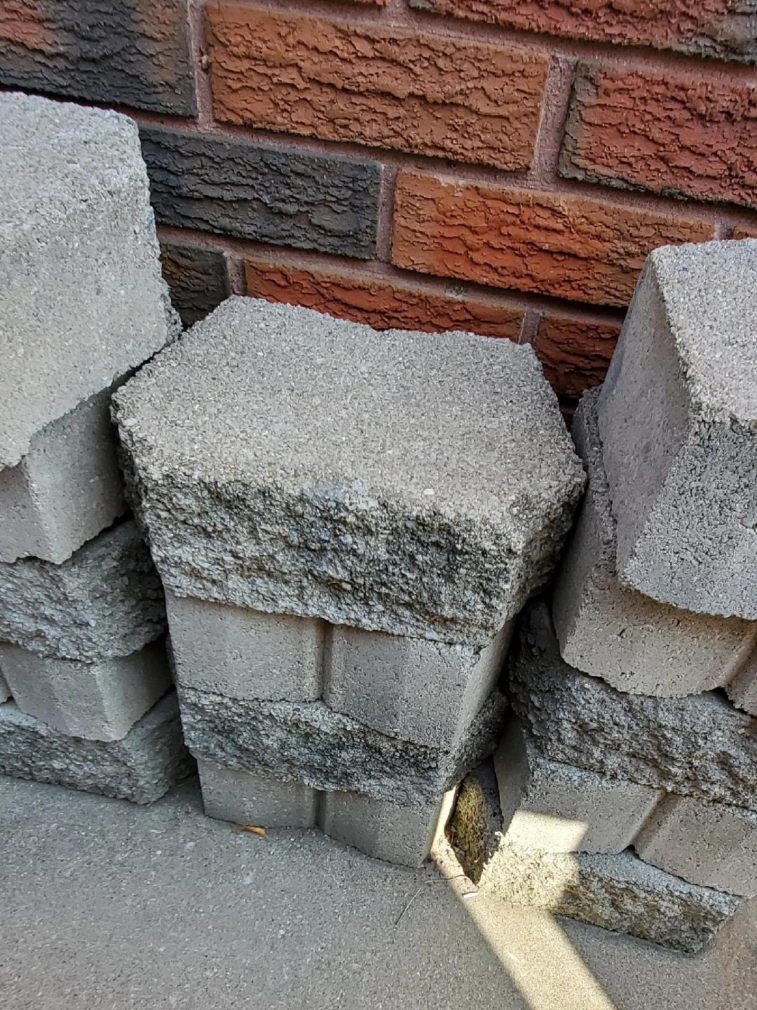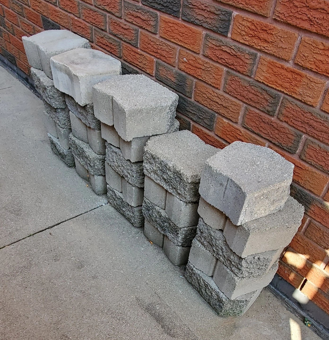 24 pieces. Solid concrete. Great as a border for flower/shrub garden; ideal as a border edging around a campfire pit.
