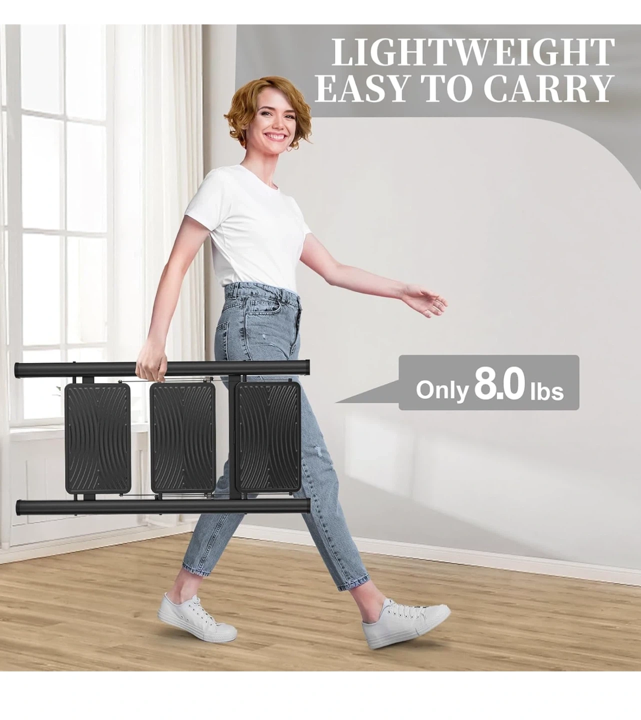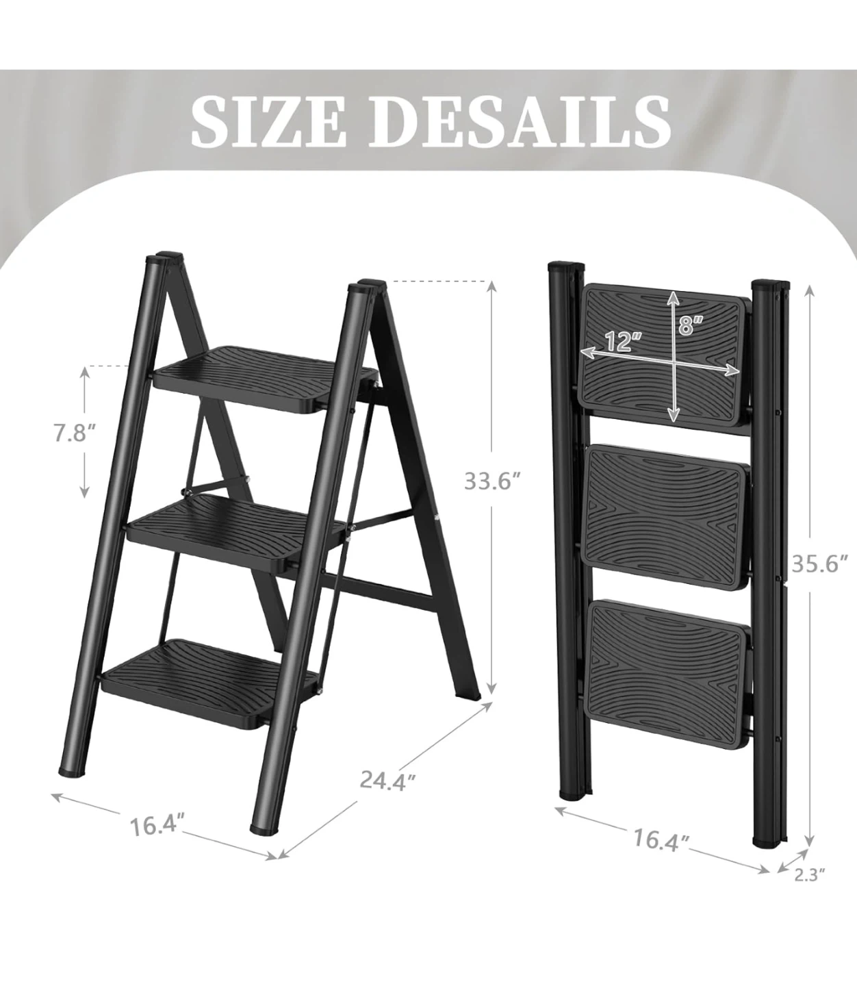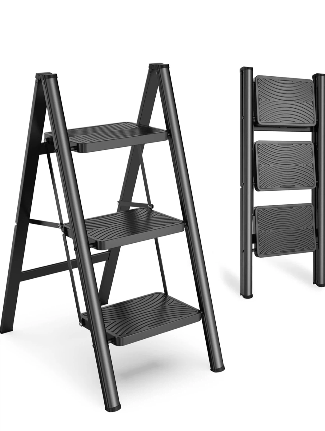 This 3-step ladder is perfect for reaching those high shelves or tackling household tasks! It's lightweight and easy to carry around, making it a convenient addition to any home. The ladder features a space-saving design for easy storage and has a max capacity of 330 lbs. It also has a reinforced beam and wide, seamless pedals for added safety and comfort