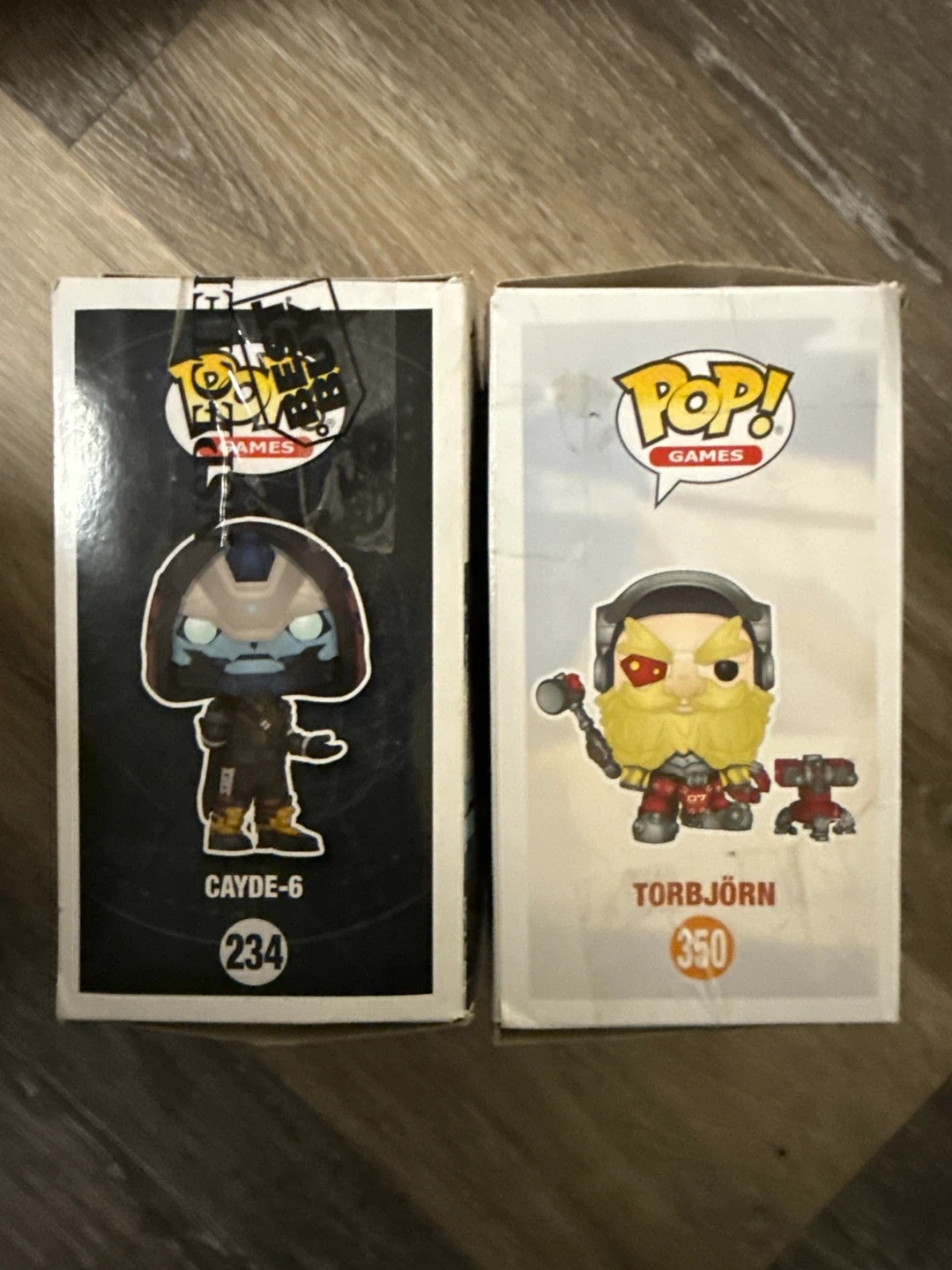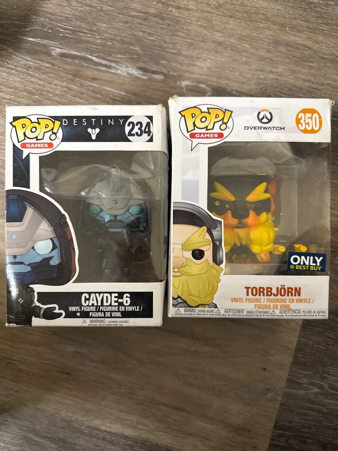 Selling a pair of Funko Pop! Games figures! One is Cayde-6 from Destiny (number 234), and the other is Torbjörn from Overwatch (number 350)