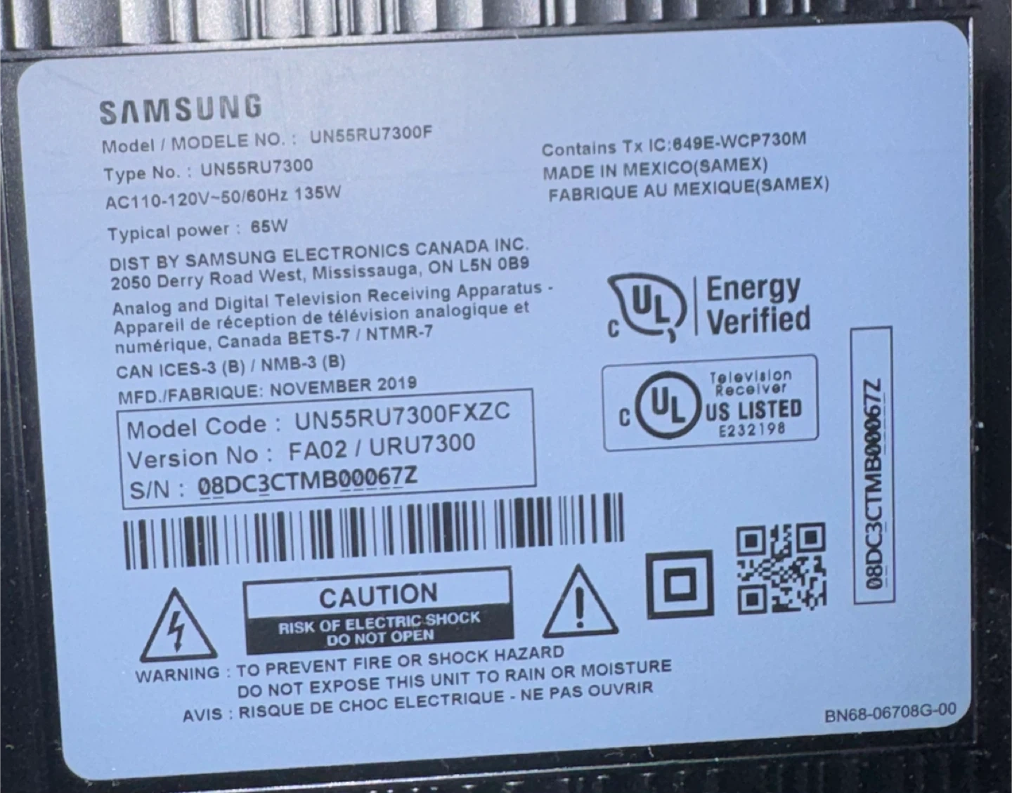 • Model: Samsung UN55RU7300F / UN55RU7300FXZA (55” Curved LED Smart 4K UHD TV)