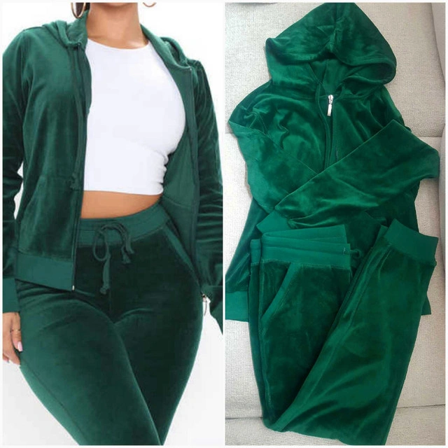 Brand New Velour Hunter Green Hoodie and Pants Set
