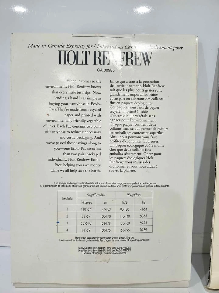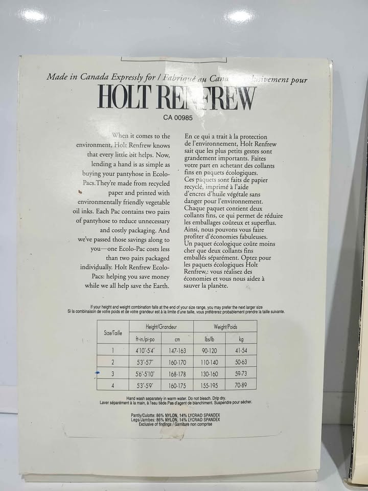 - Holt Renfrew Silky Sheer Control Top pantyhose.